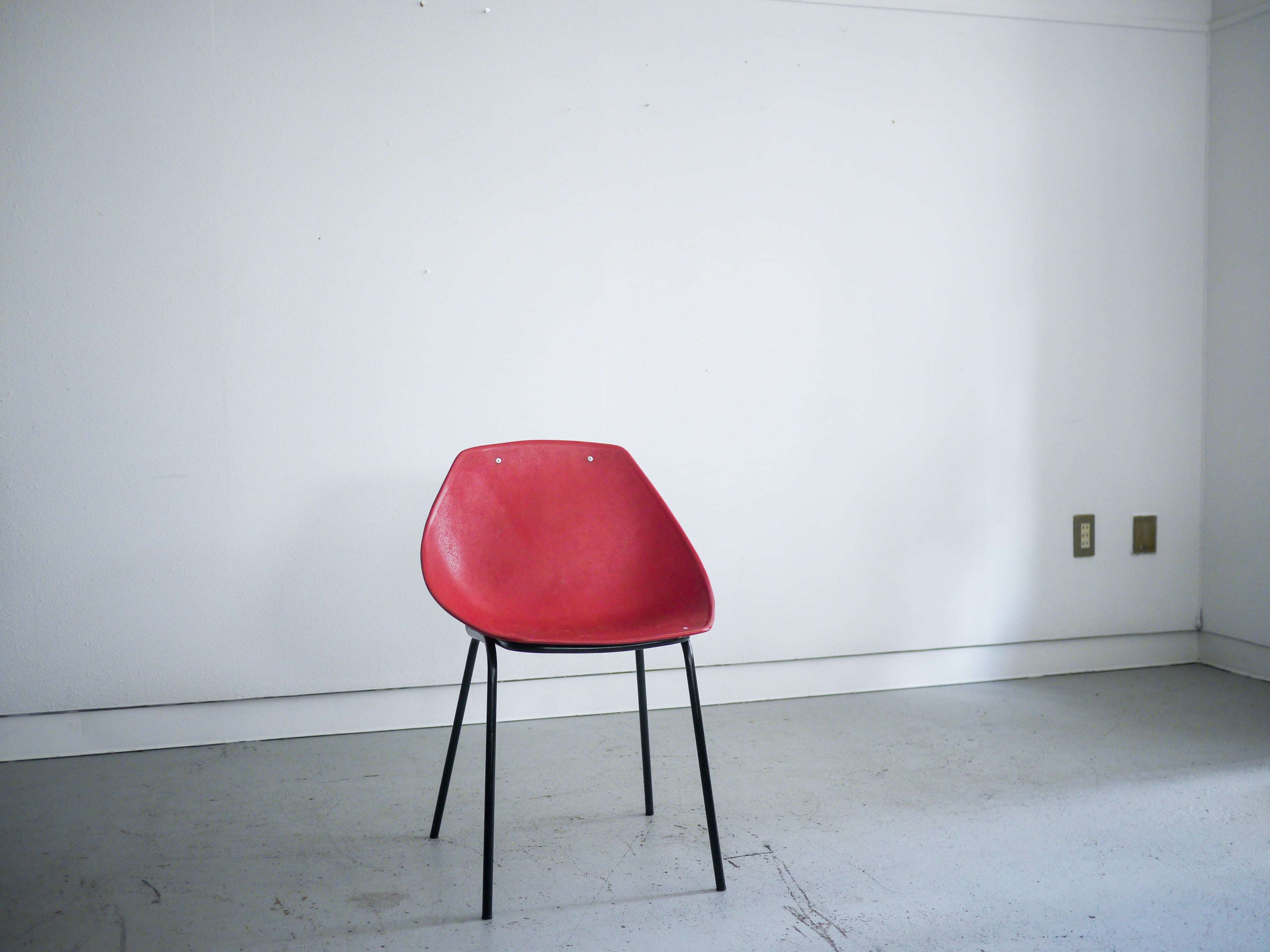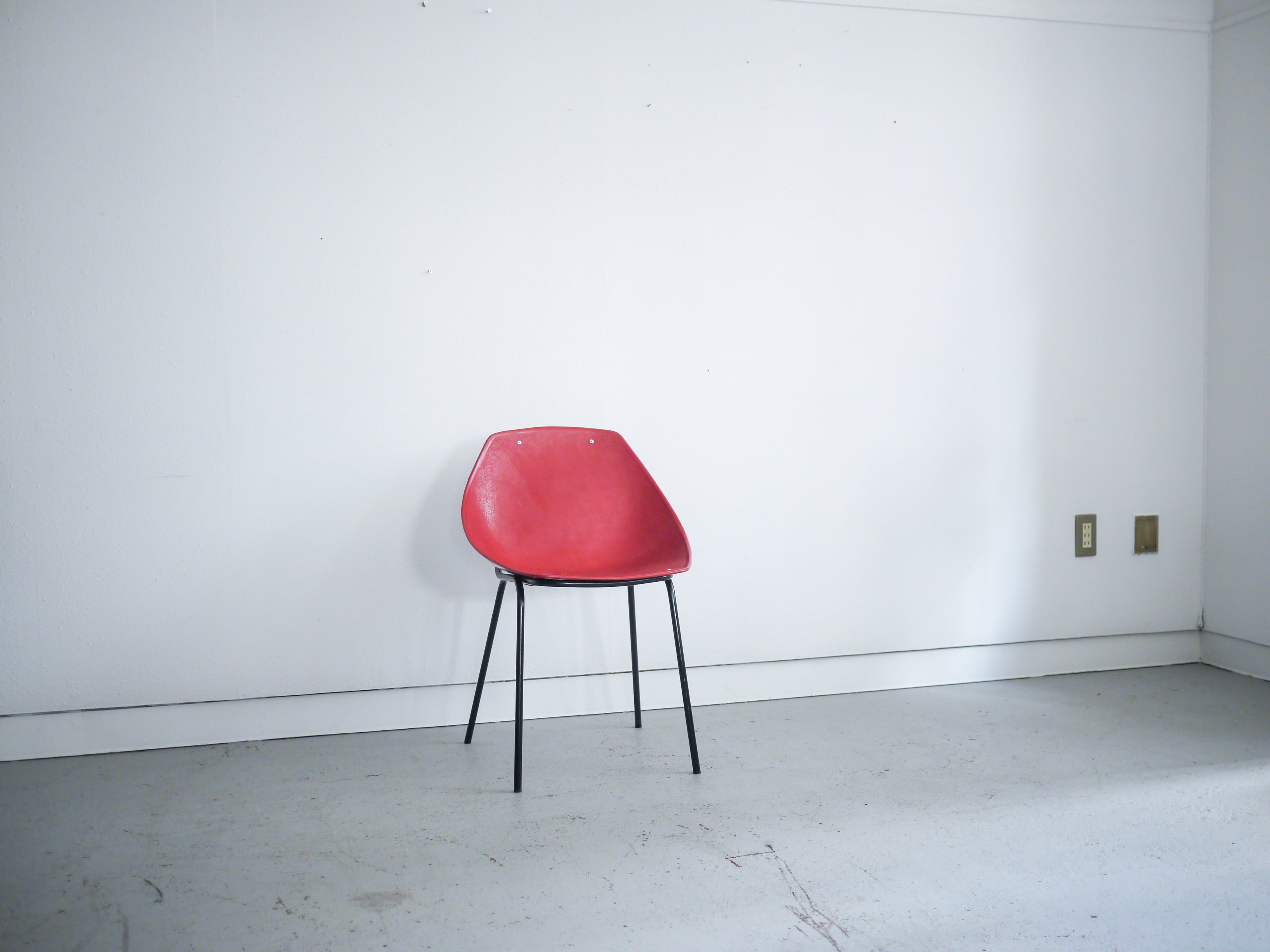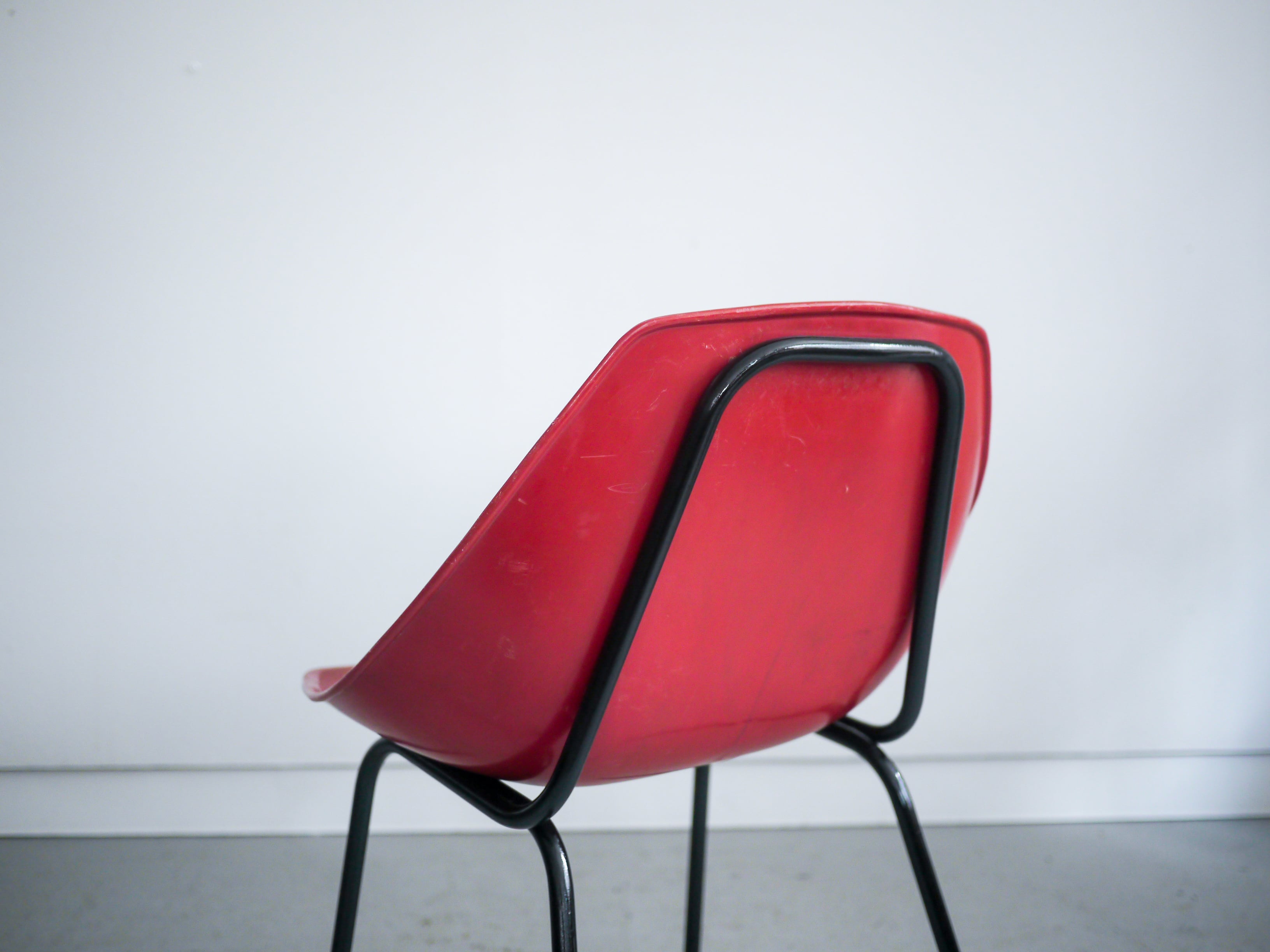 その一脚の存在感は独創的で、素材に反してどこか温かみがある一脚。このアイテムは赤色のシェルタイプです。