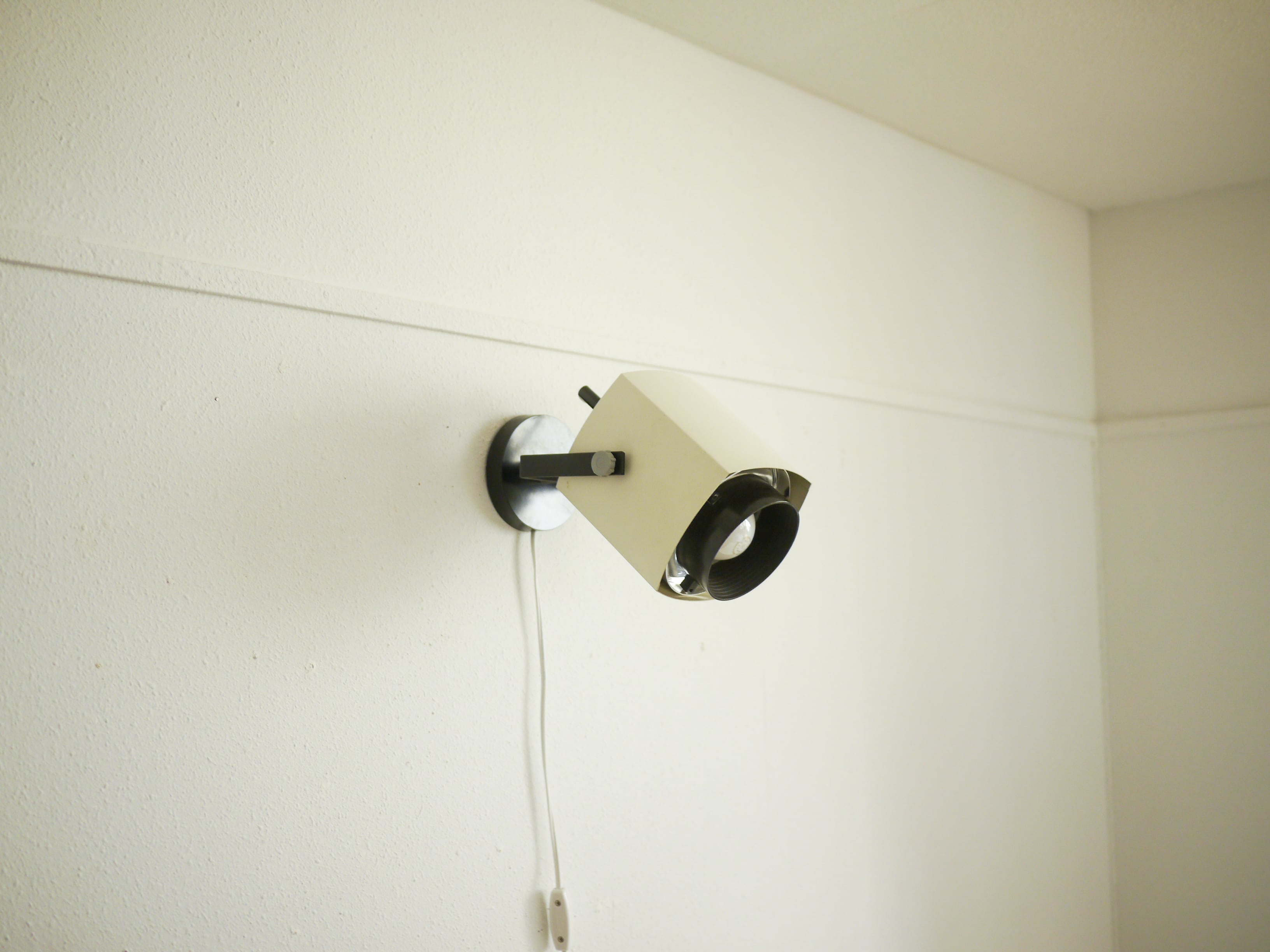 オランダ・ラーク社のスポットランプです。1960年代のダッチミッドセンチュリー期にメタルやガラスを用い様々な照明を発表していた同社。こちらは壁や天井に取り付けるタイプのスポットライトです。