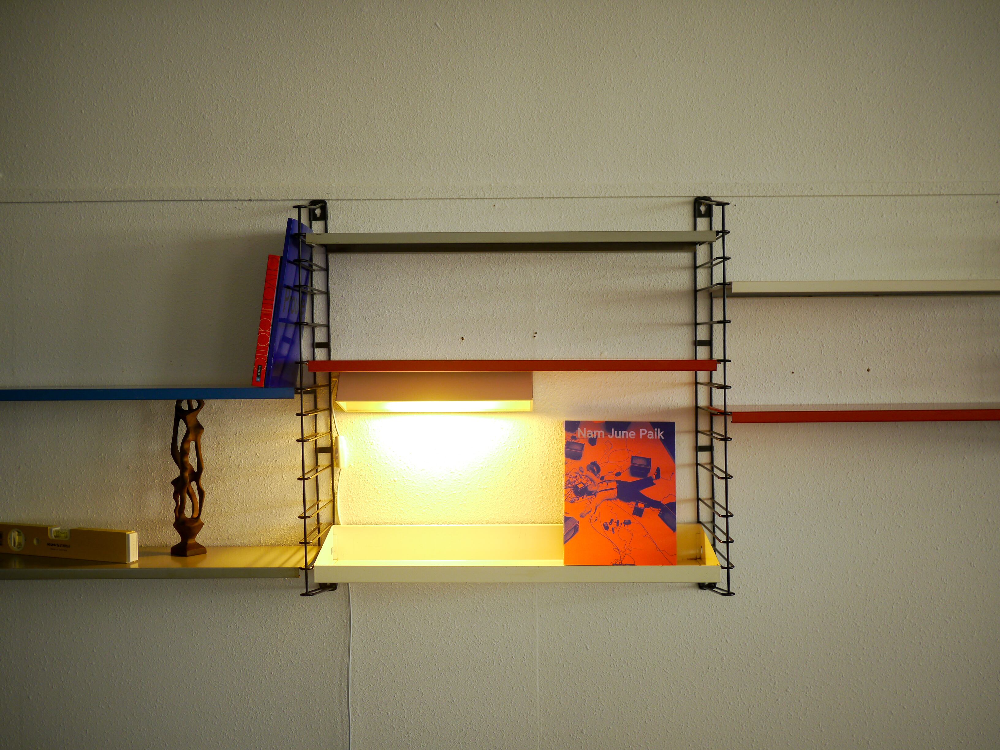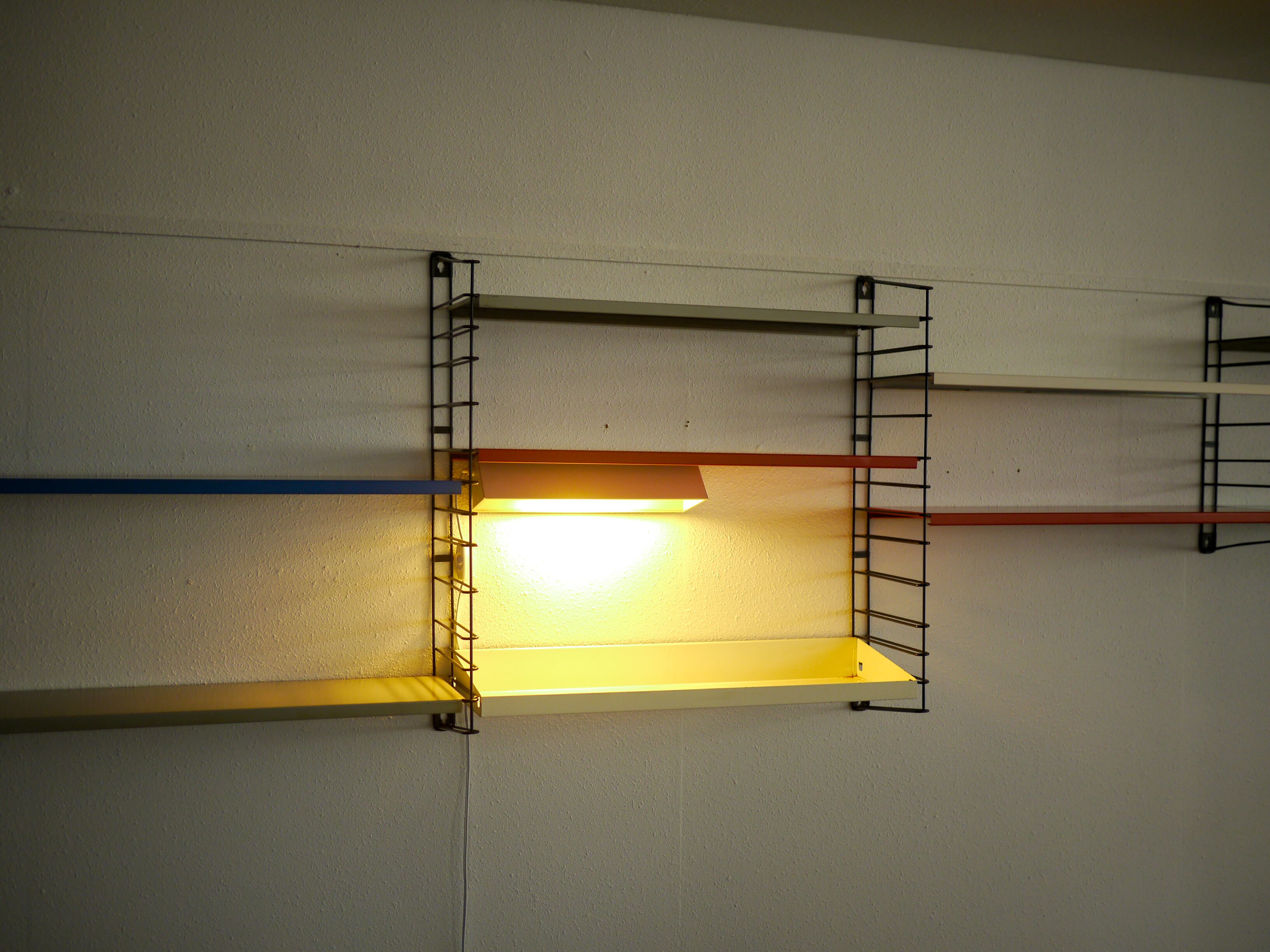 特に専用ランプは珍しく、棚板に差し込むように使用するため棚板のポジションによってランプも自在にポジション変更が可能です。取り付けには支柱をしっかりと壁にビス打ちする必要があります。