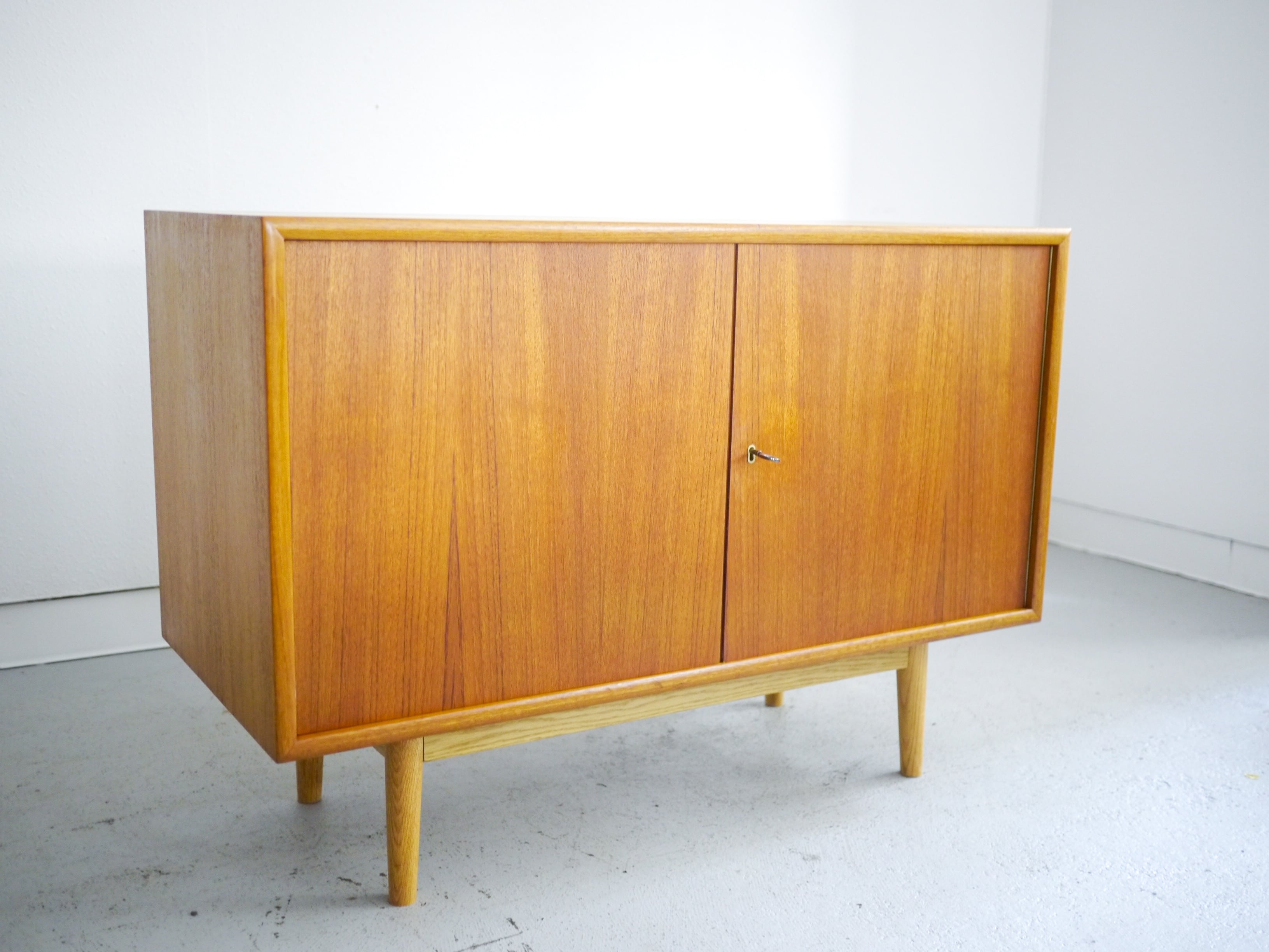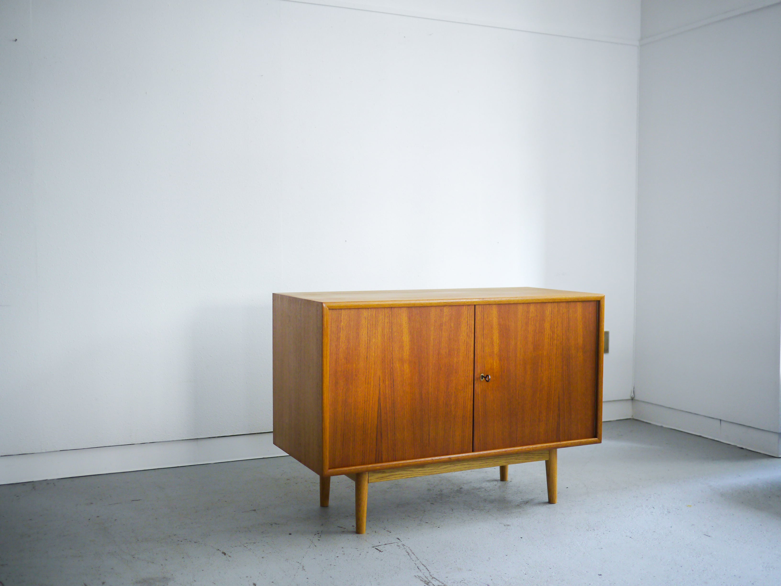 シンプルな2枚扉のキャビネットは小ぶりですが、収納量はタップリとあります。