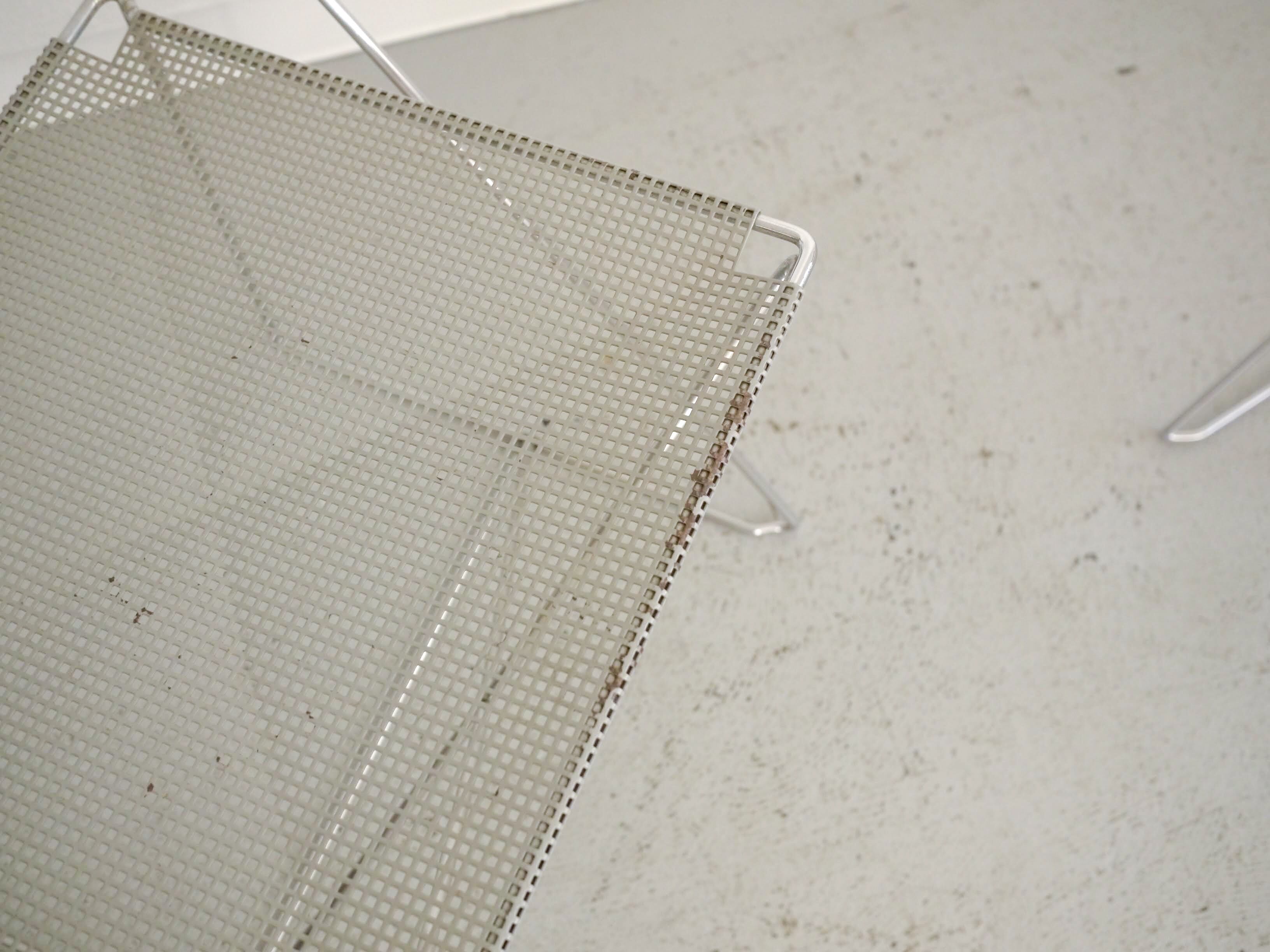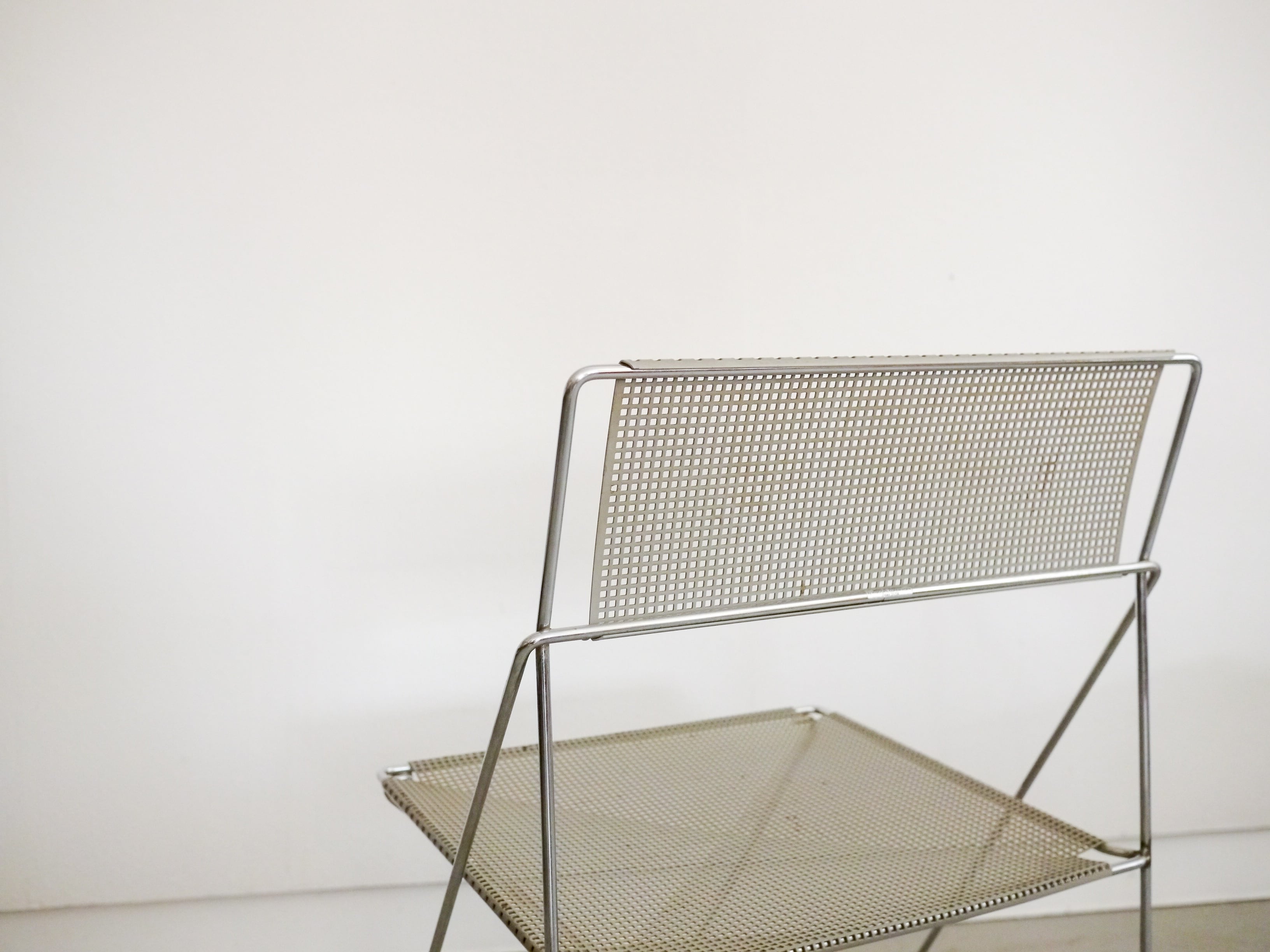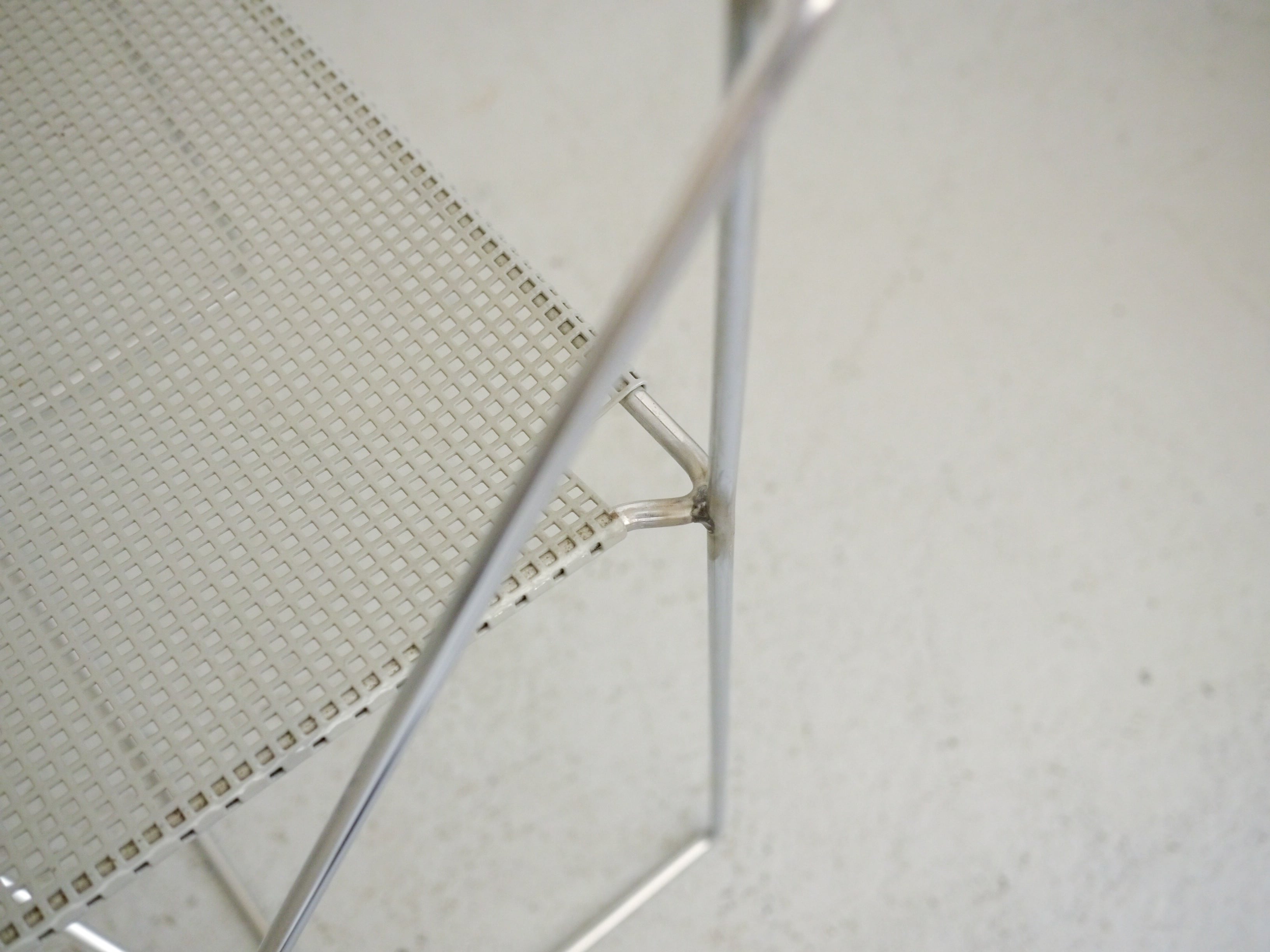 ミニマルな構造でスタッキングした時のコンパクトさ、美しさはそれまでのデニッシュデザインとは一味違うアイテム。昨今インテリアブランドHAYより復刻されましたが、こちらは初期のデンマーク·Hybodan社製です。背面にオリジナルのステッカーがあります。