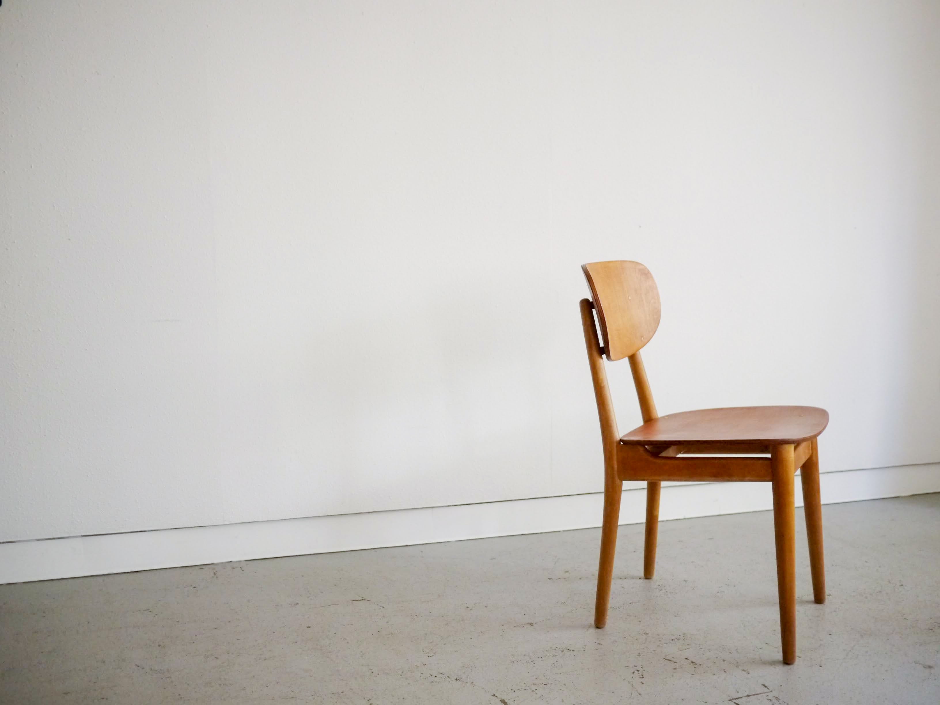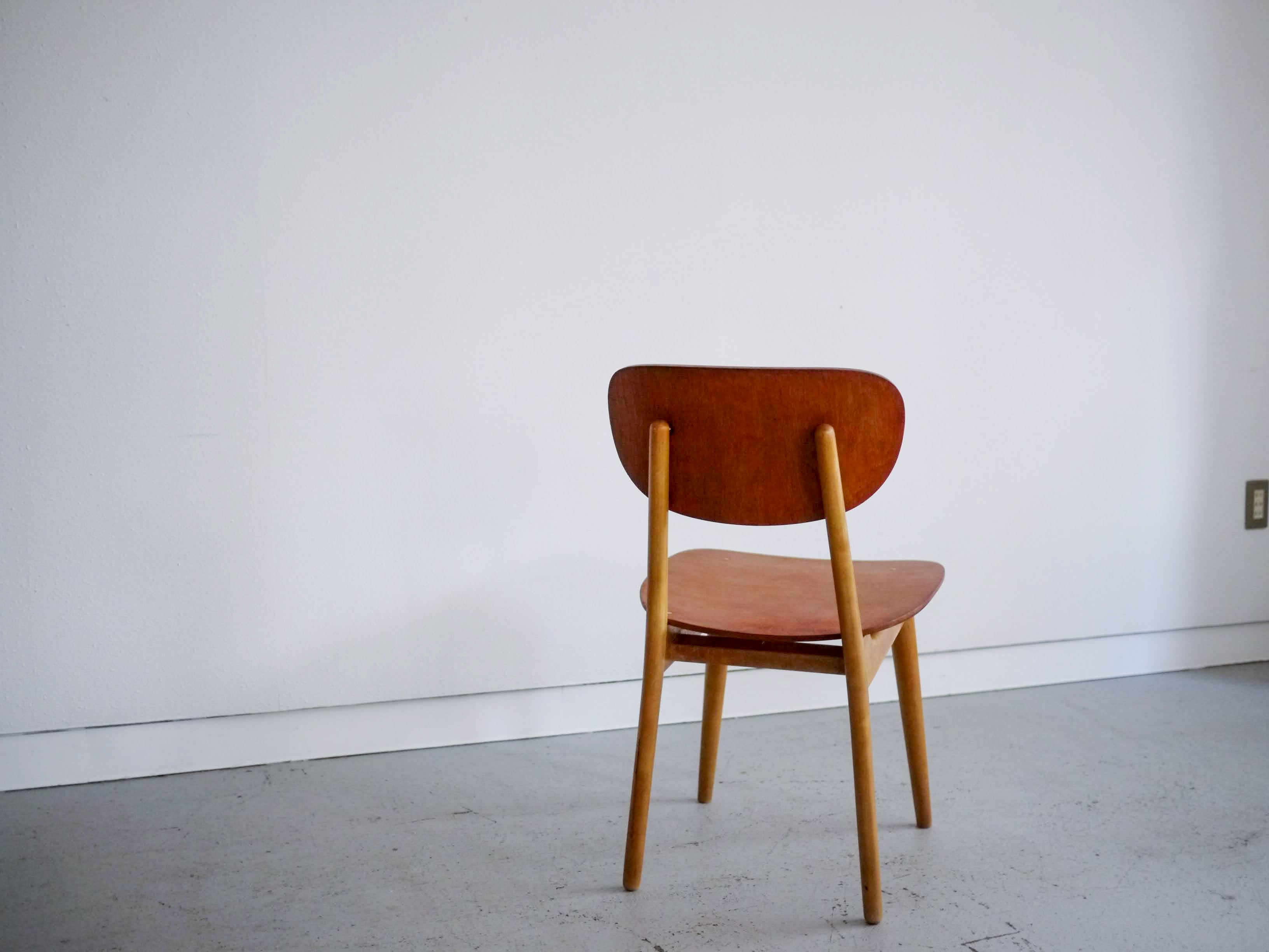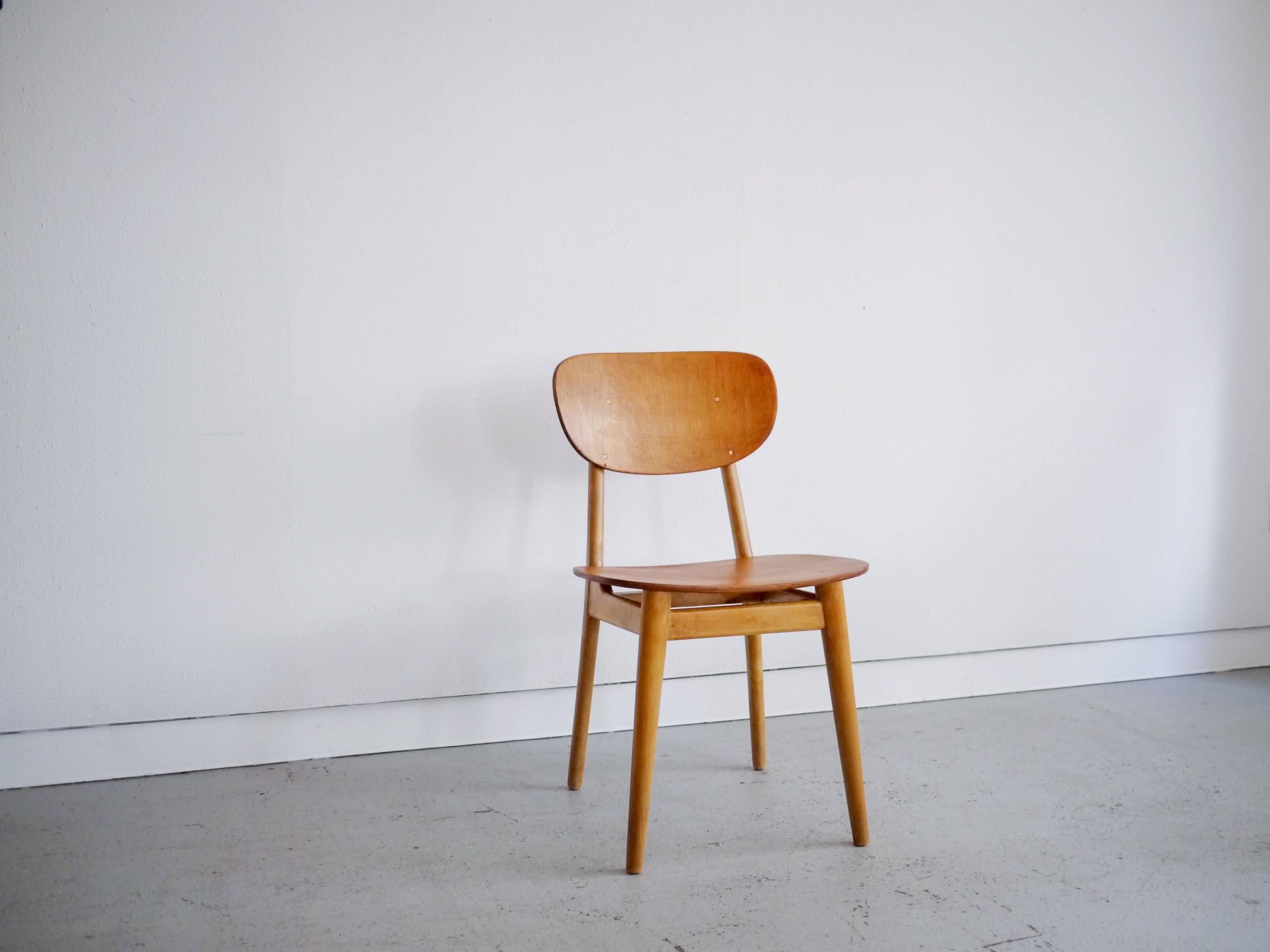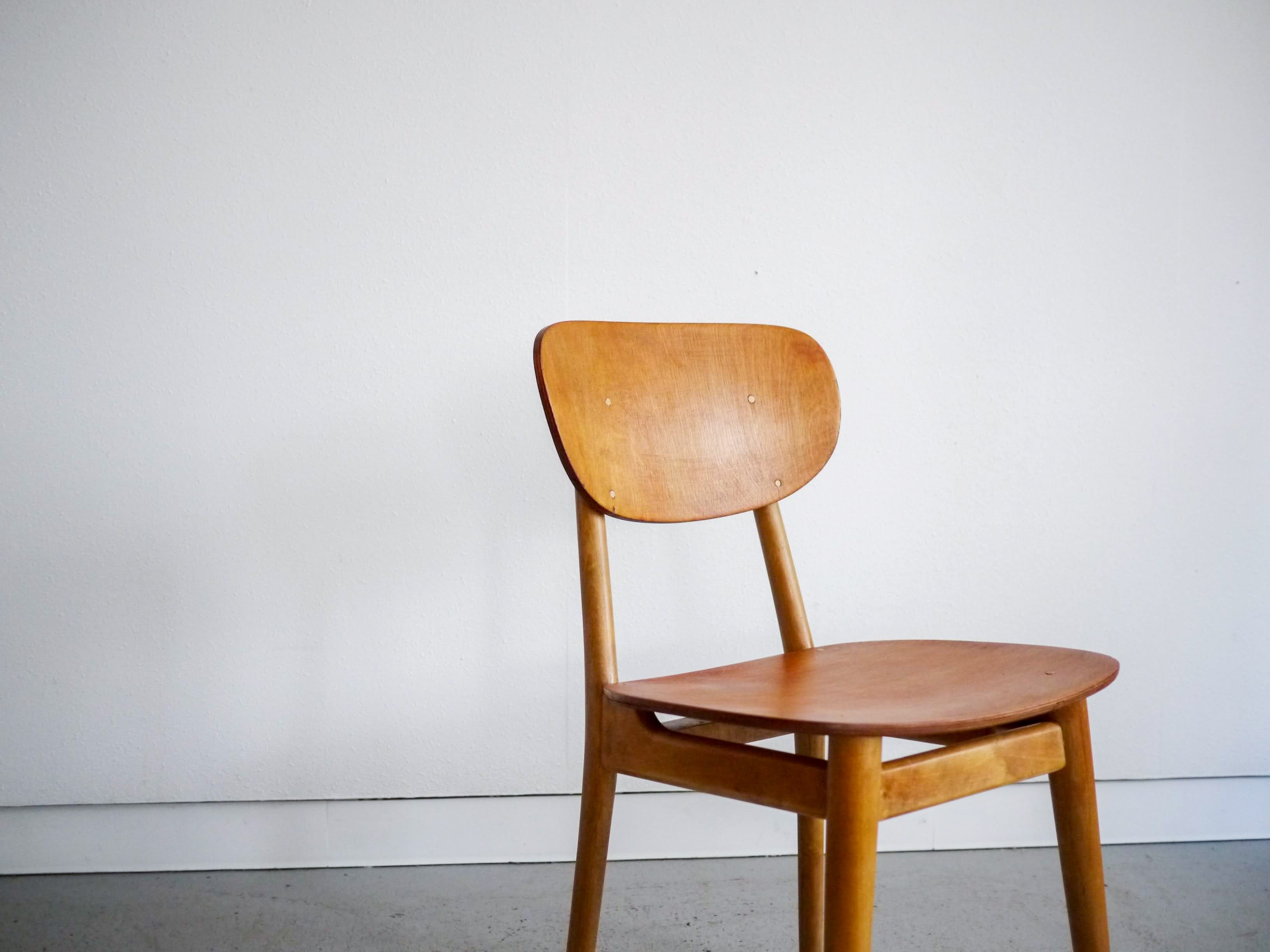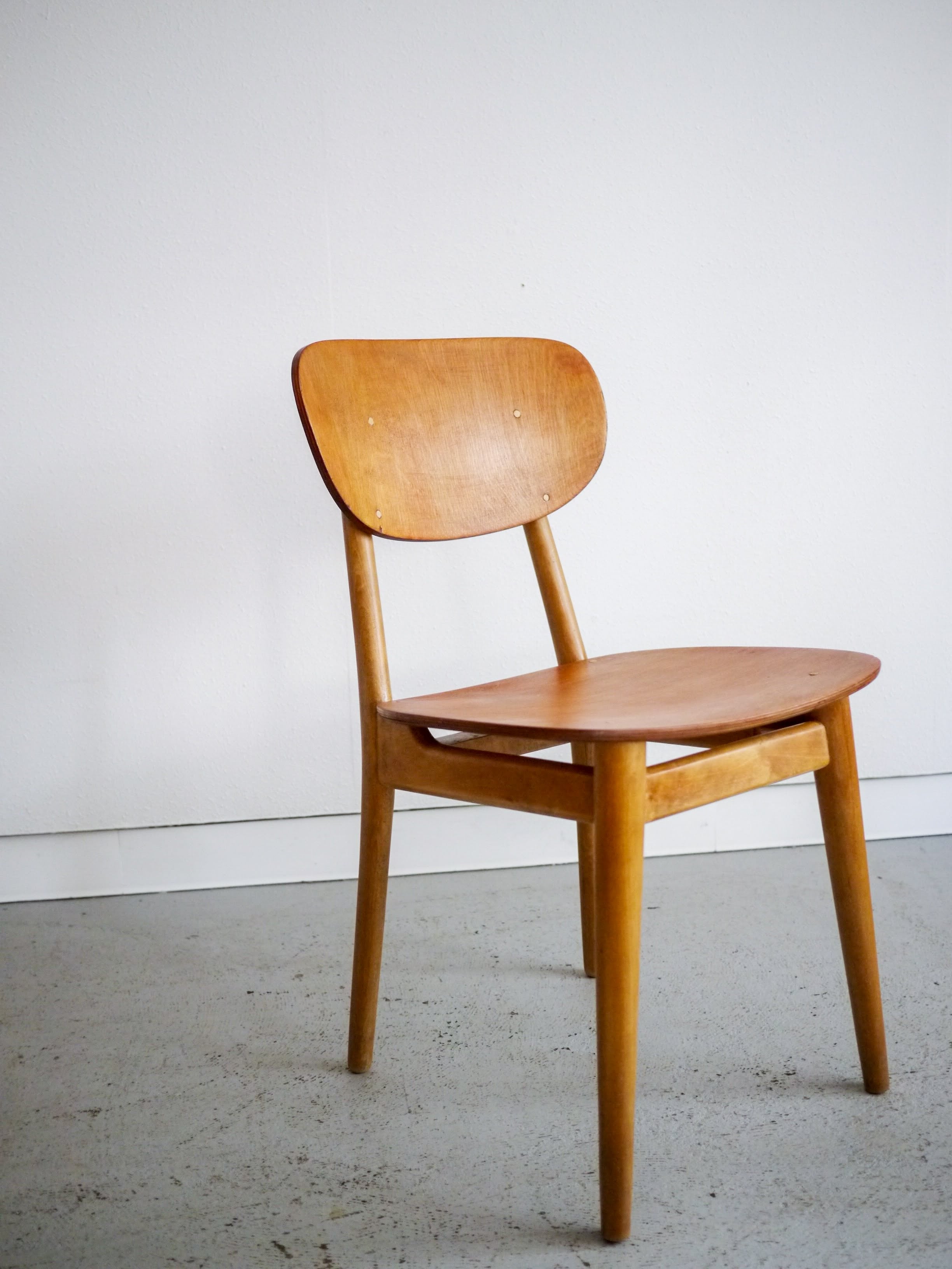 1950年台先代の父より受け継いだチーフデザイナーを務めたケース・ブラークマンがデザインしたチェアです。バーチシリーズの流れを汲むと思われるフレームと、チークの座面、そして背もたれ裏のショックマウントが特徴的なチェア。このショックマウントは親交のあったイームズのDCMチェアを思わせます。