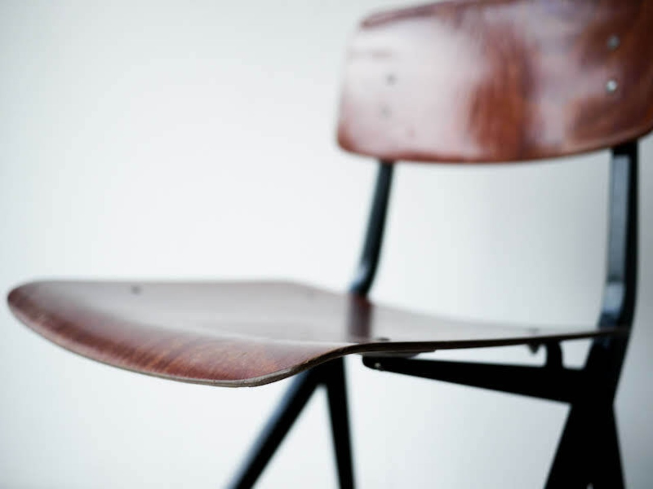 学校などで使われることが多かったこの椅子ですが、当時そのような場所で使われていた家具は改修のタイミングで大量に廃棄されてしまった背景があり現在ではその数が徐々にすくなっているアイテムです。