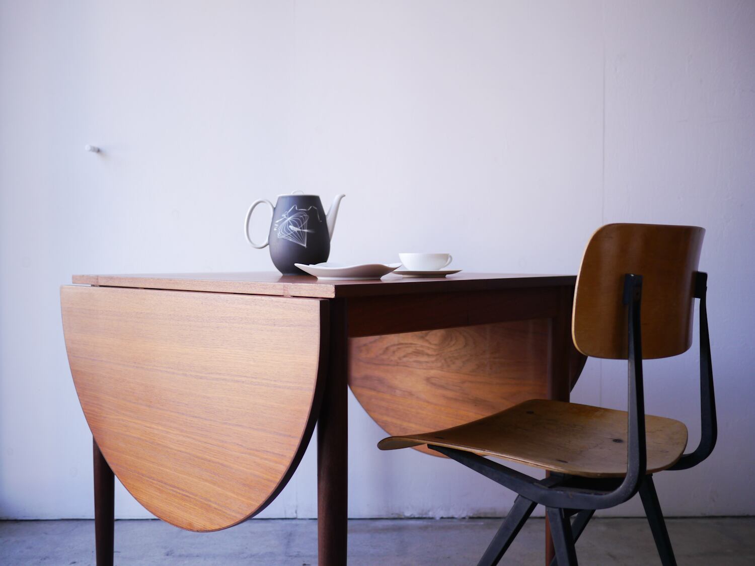 蝶の羽の様に可変する天板が特徴的なダイニングテーブル。