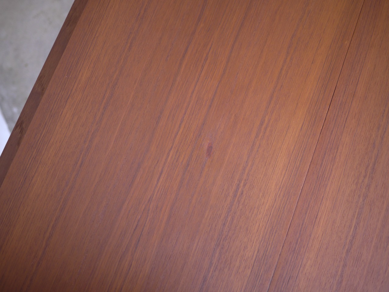 全体的にメンテナンスを施し、ご使用に関しては問題ありませんが、サンディングでは落としきれなかった細かな傷、天板に2cm程の軽い凹みなどがございます。気になる方は別途画像にてご案内致しますので、ご購入の前にお気軽にお尋ねください。