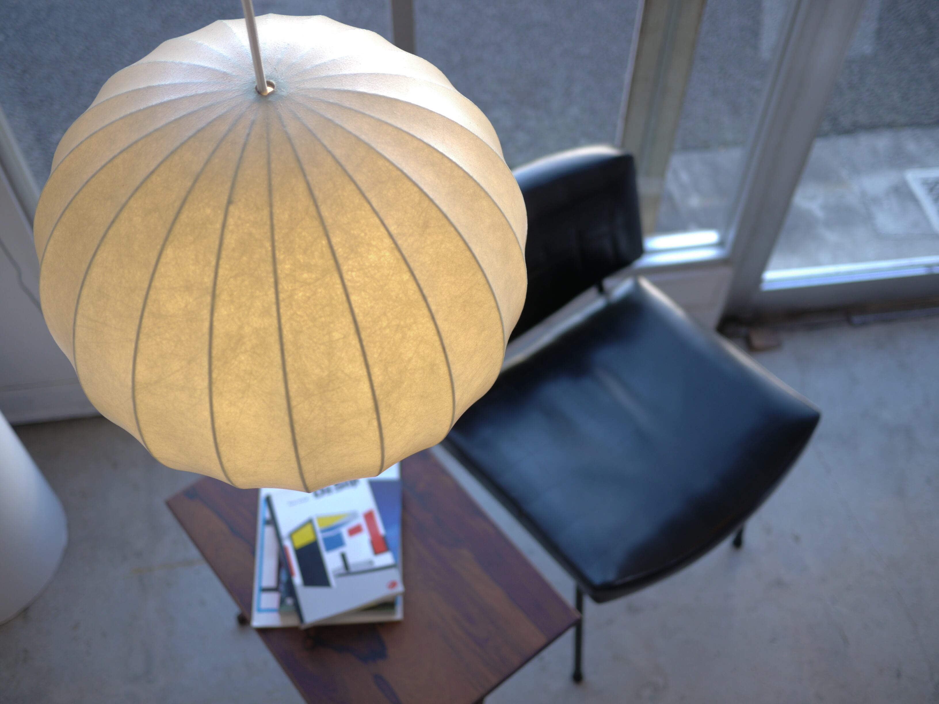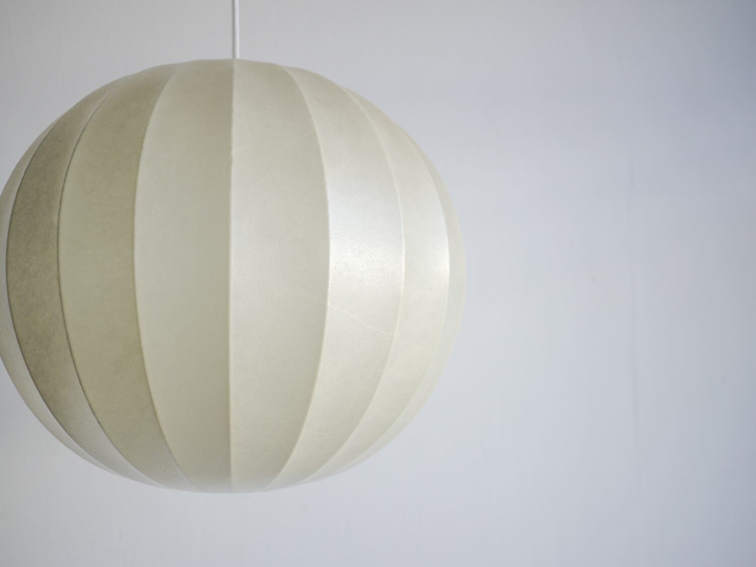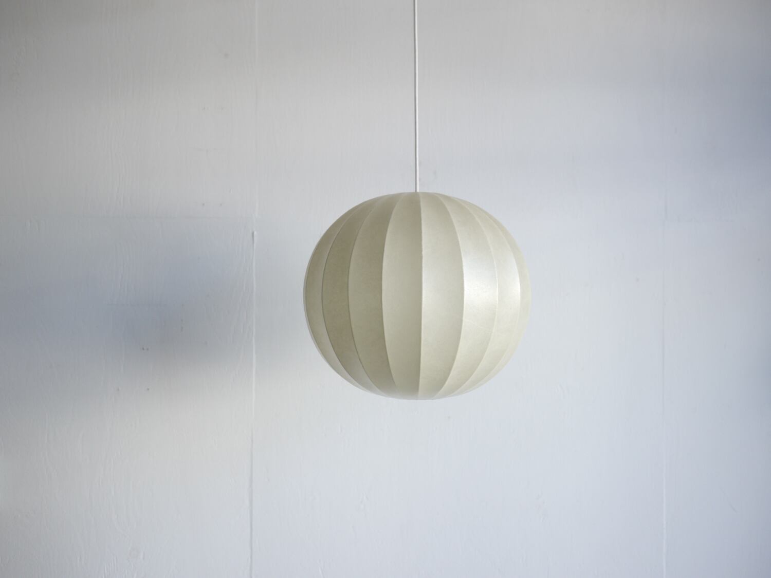 コクーンと呼ばれる様に、さなぎの様な独特な質感は紙の様にも見えますが、樹脂を吹き付ける製法によって作られたもの。アメリカのデザイナー、ジョージ・ネルソンの代表作バブルランプにも見られるこの製法から作られたランプは、樹脂のシェードを抜けてくるぼんやりと優しい光を生み出します。
