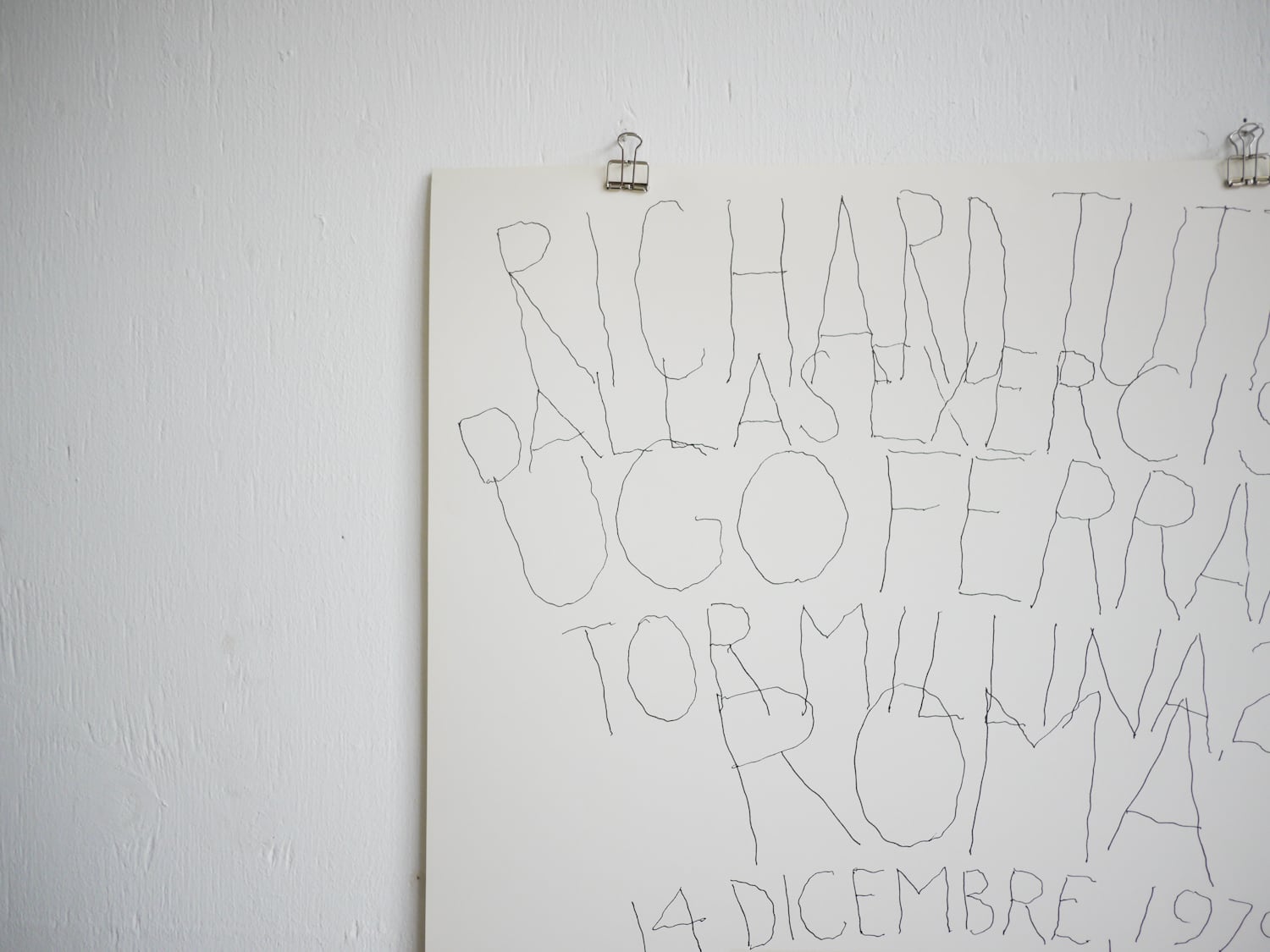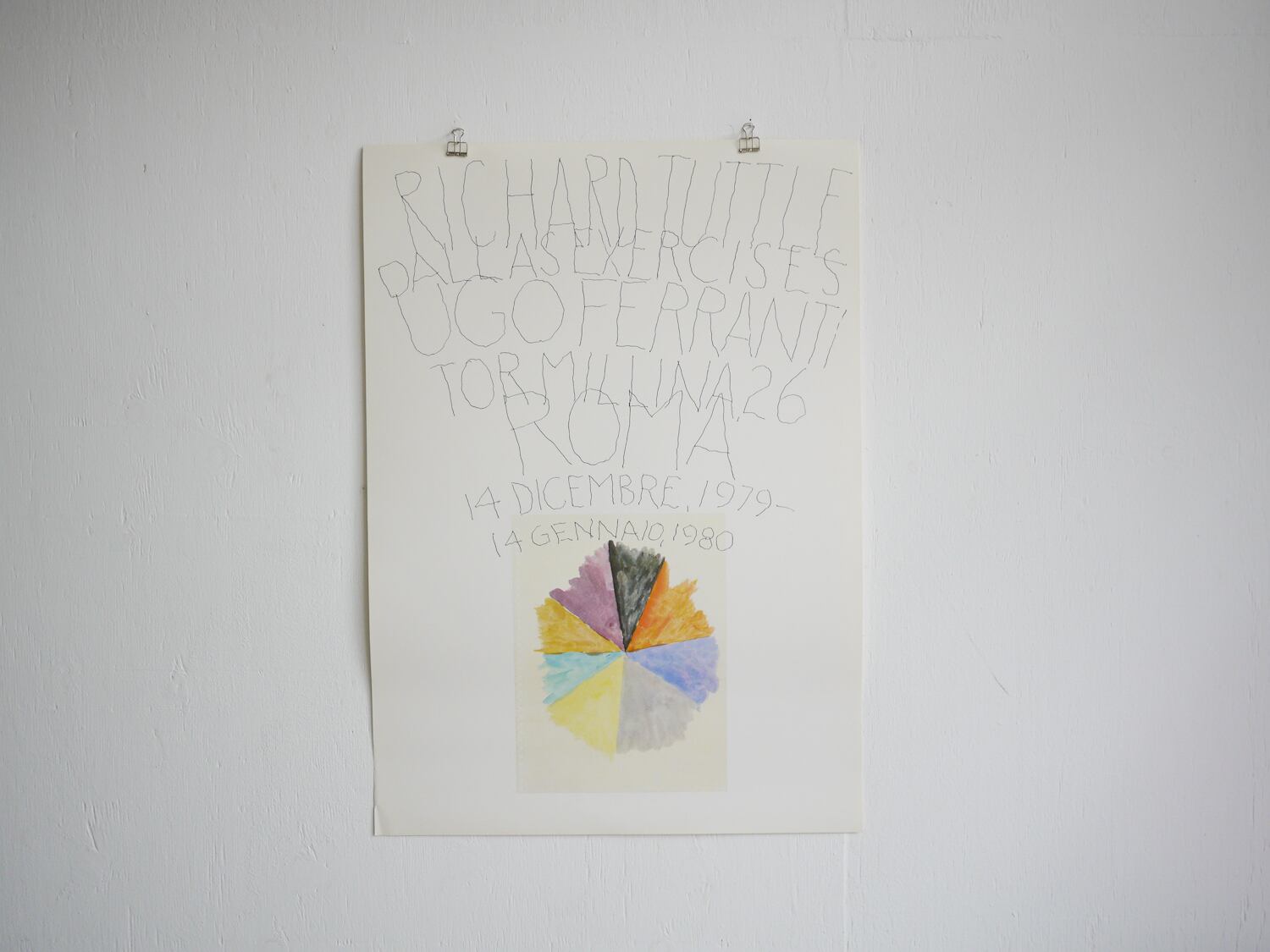 ポストミニマリズムアーティスト、リチャード・タトルが1979年ローマのUgo Ferranti Galleryにて開催された自身のエキシビジョンDallas Exercisesの為ににデザインしたポスター。オリジナルのオフセットプリントです。ミニマルな存在感でそのまま壁に飾るのも良い雰囲気ですし、フレームでアウトラインを取るのも良いかもしれません。