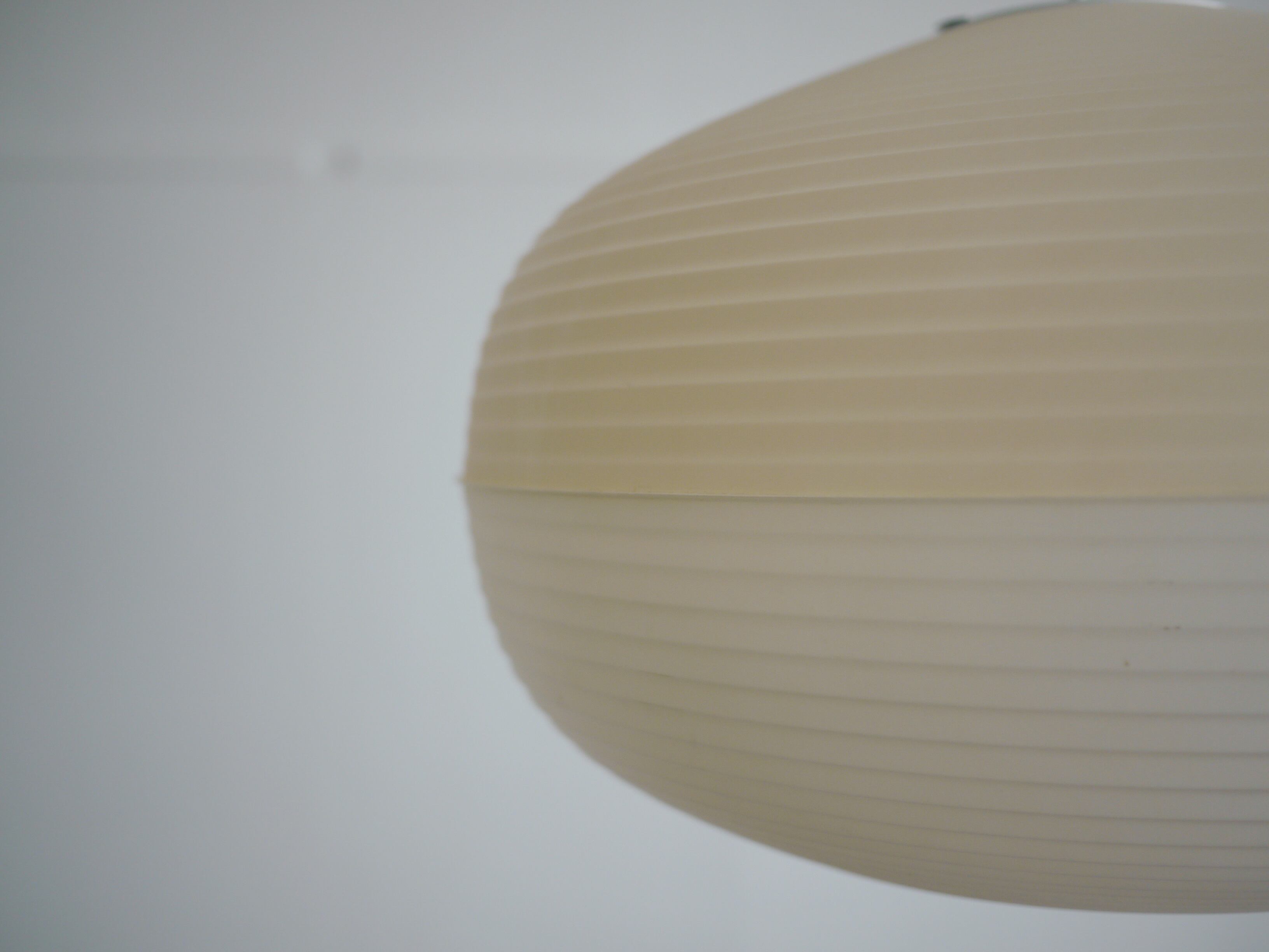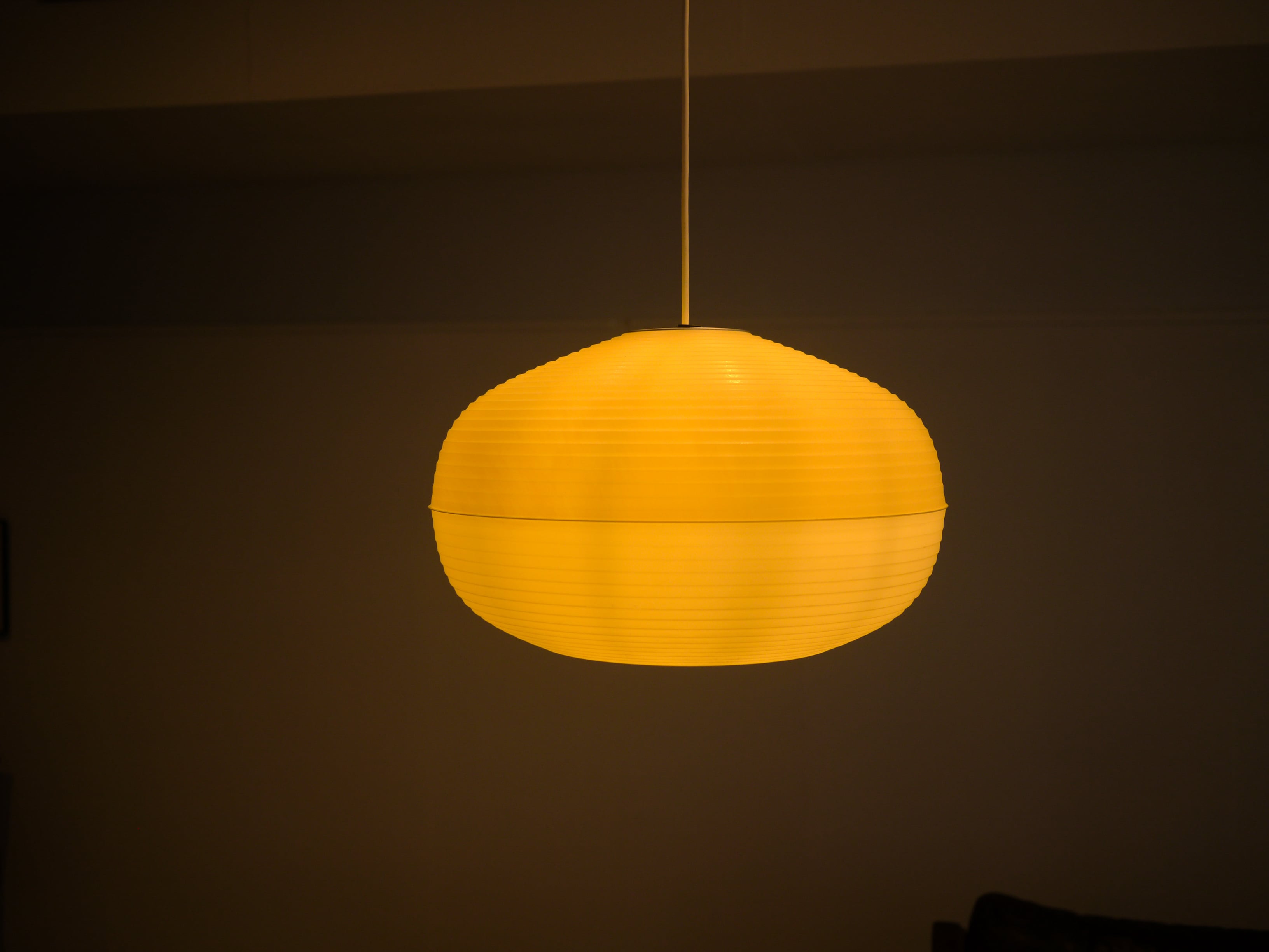 折り曲げられた紙のようなデザインですが、シェードはプラスチックでできています。ですが紙のような柔らかさがあり、生み出す光も柔らかく優しい光を灯します。