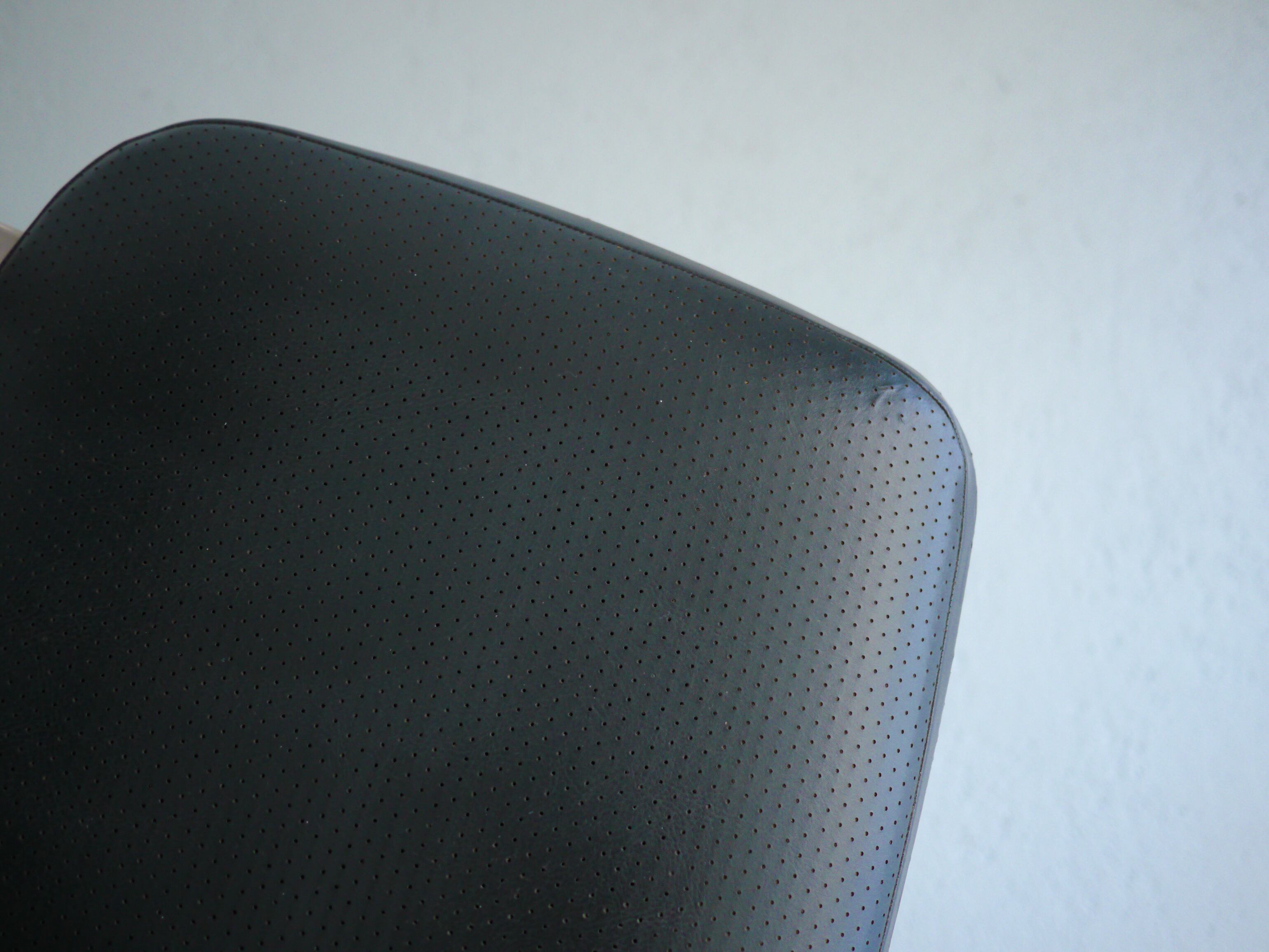 こちらは、あまり見られないビニールレザーのタイプ。座面のレザー部にはパンチングが施されています。