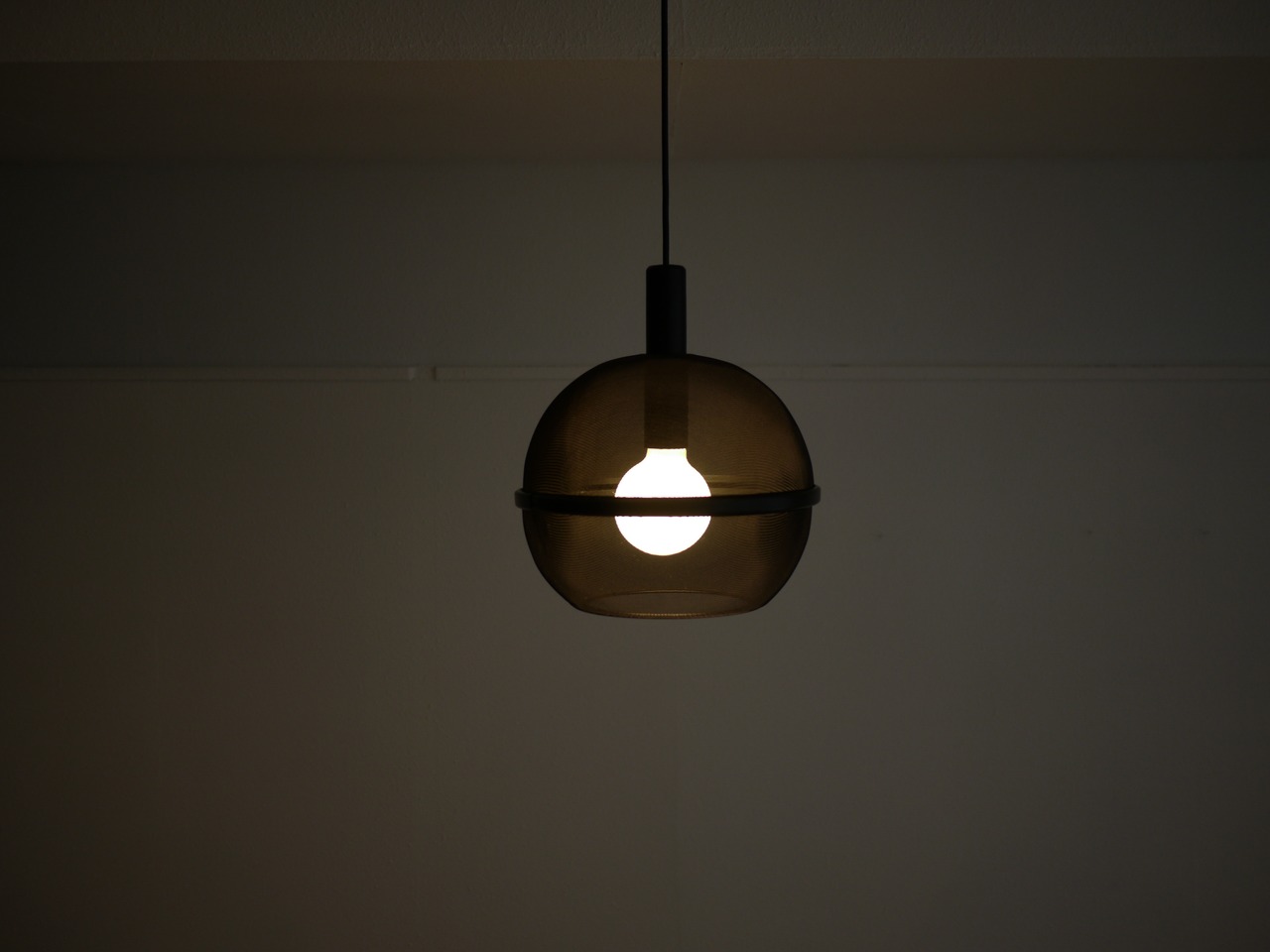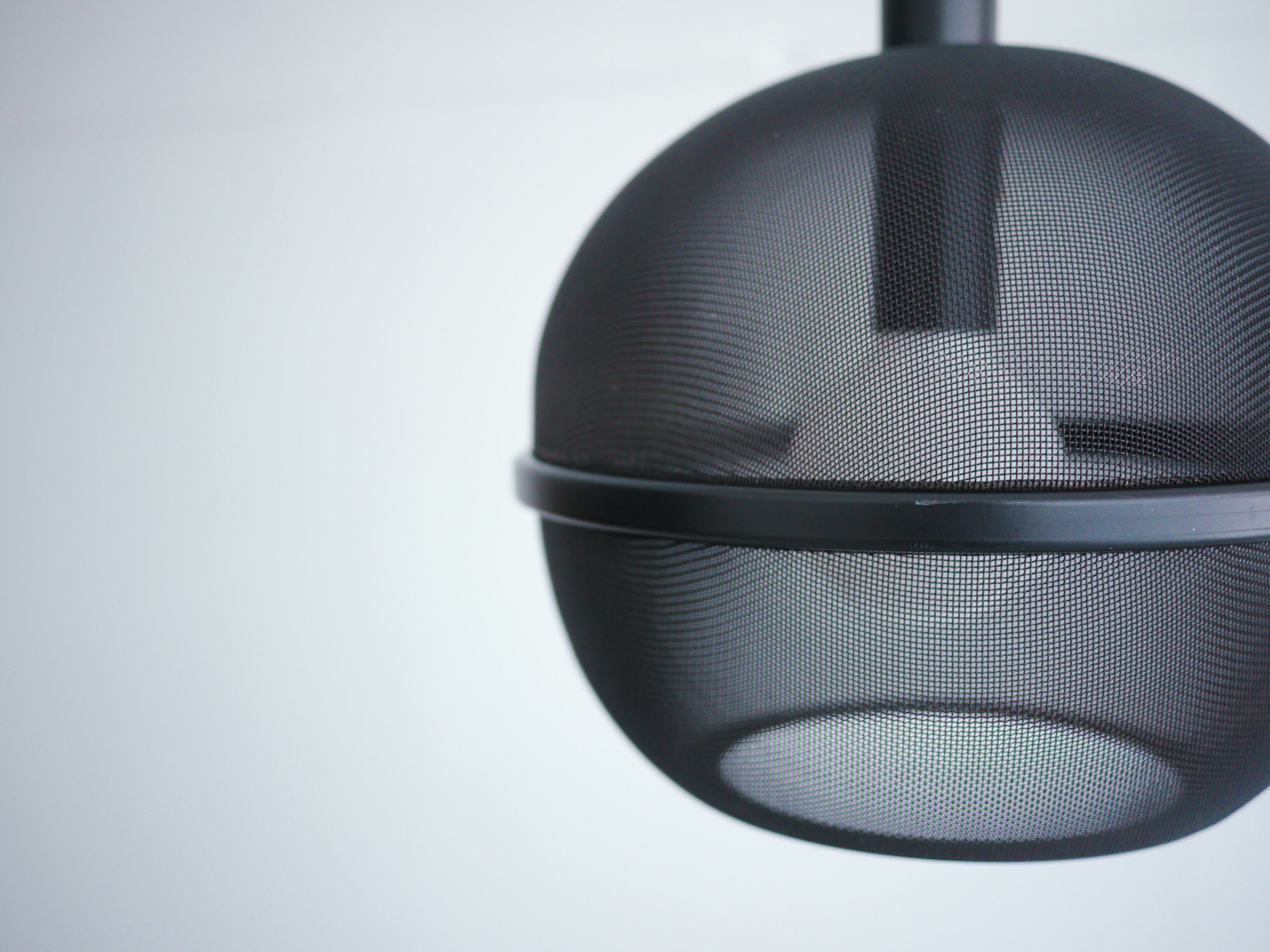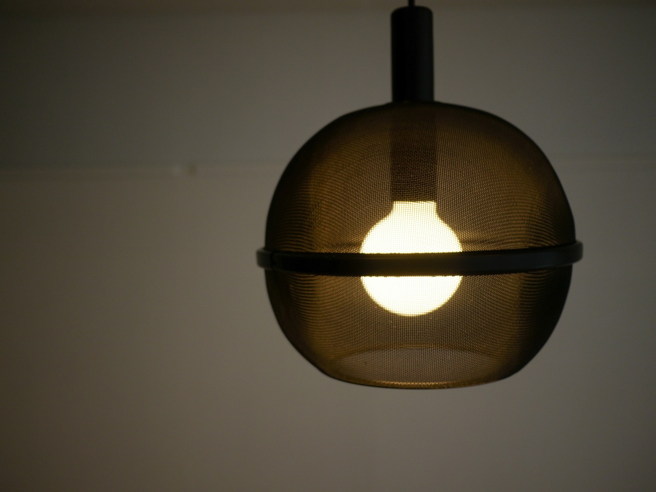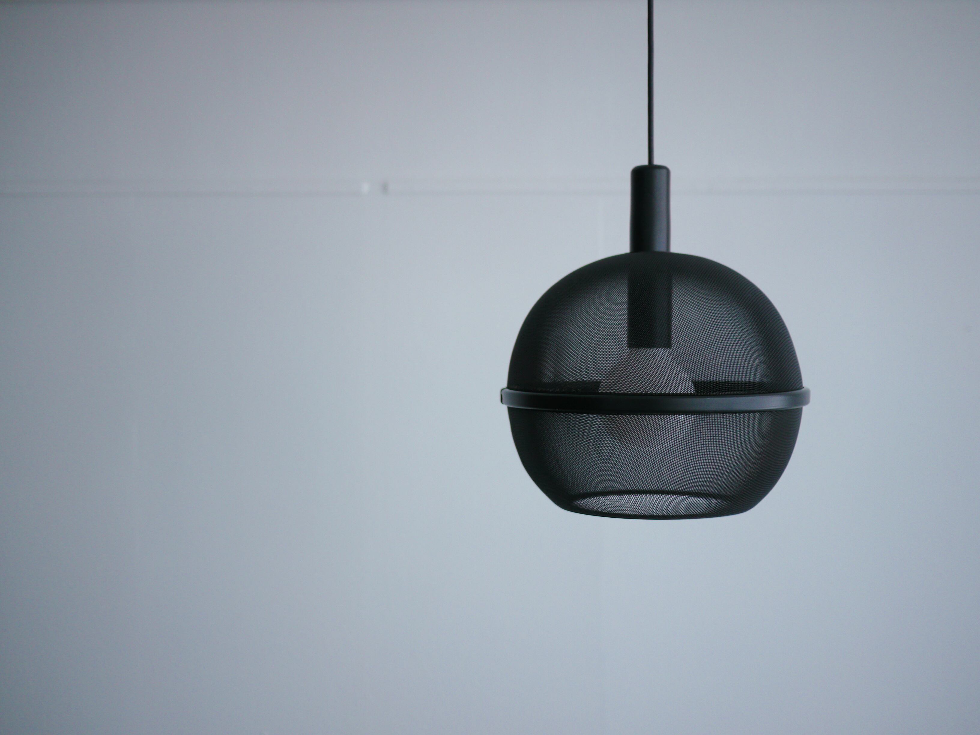 LEDボール球60W相当が付属しますが、電球で表情を変化させるのも面白いペンダントランプです。細かなメッシュに包まれ優しく漏れる光が、スチール製の照明とは思えない美しさを帯びています。