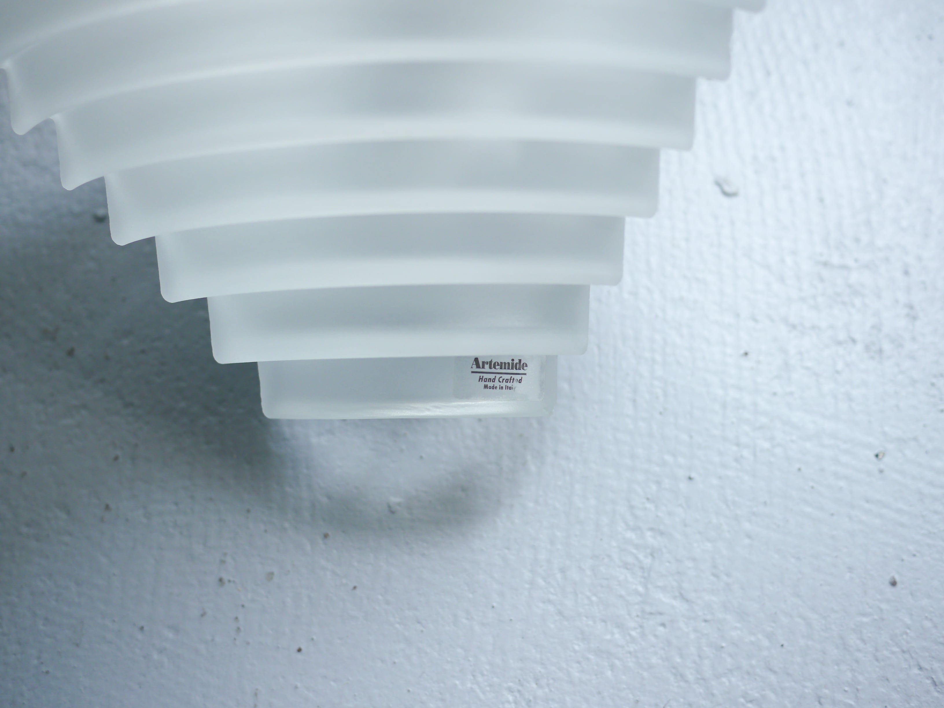 厚みのあるハンドメイド製のすりガラスを抜ける柔らかな光と、そこに反射する光が上部に抜けて幻想的な光を生んでいます。素材の持つ美しさを引き出すことを主眼に置いたプロダクトを生み出す、マンジャトッティらしい贅沢な造りです。2つストックがあります。