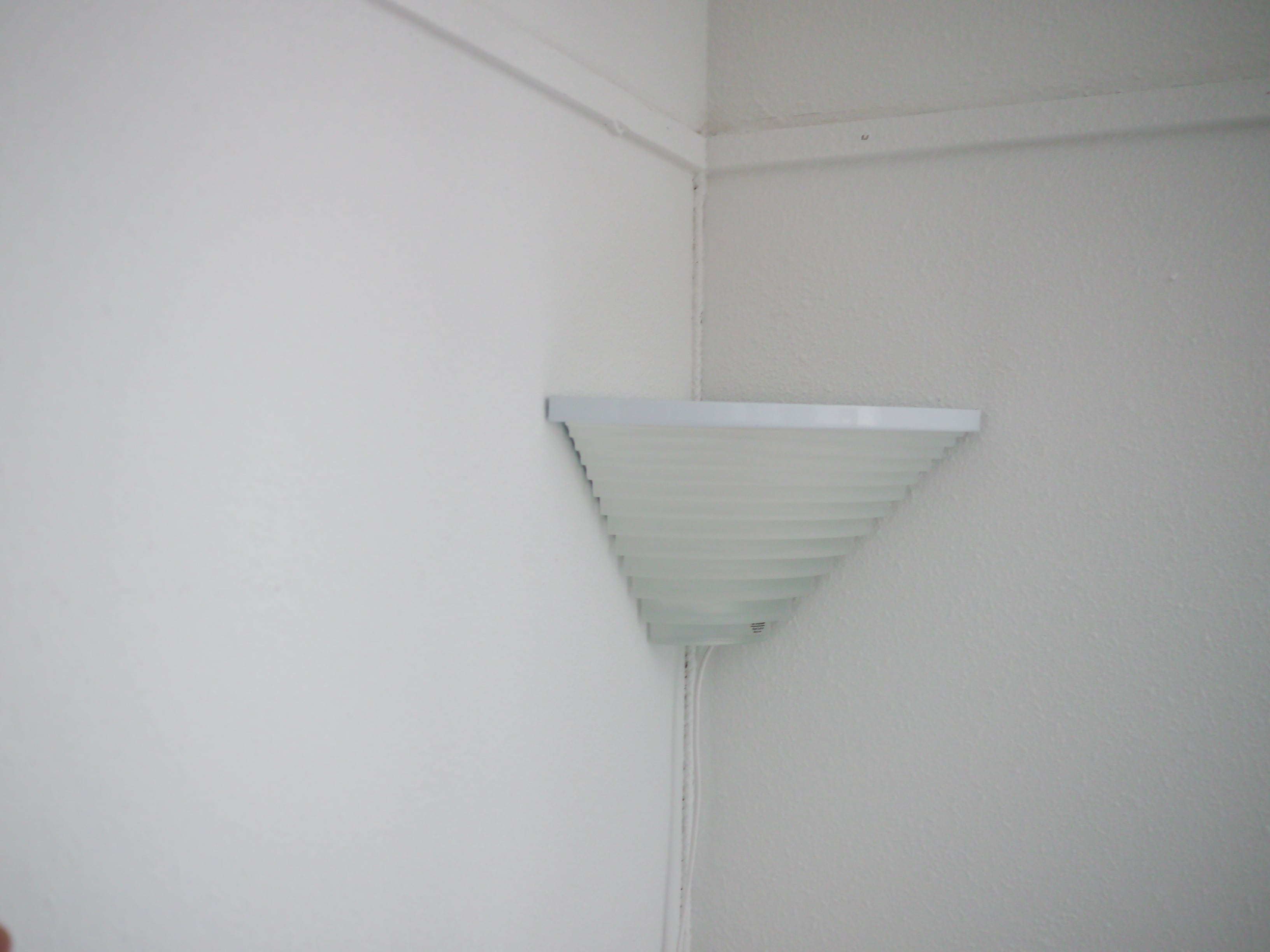 こちらはコーナー部の壁に打ち付けて使用するタイプの照明です。平面の壁には使用できませんのでご注意ください。