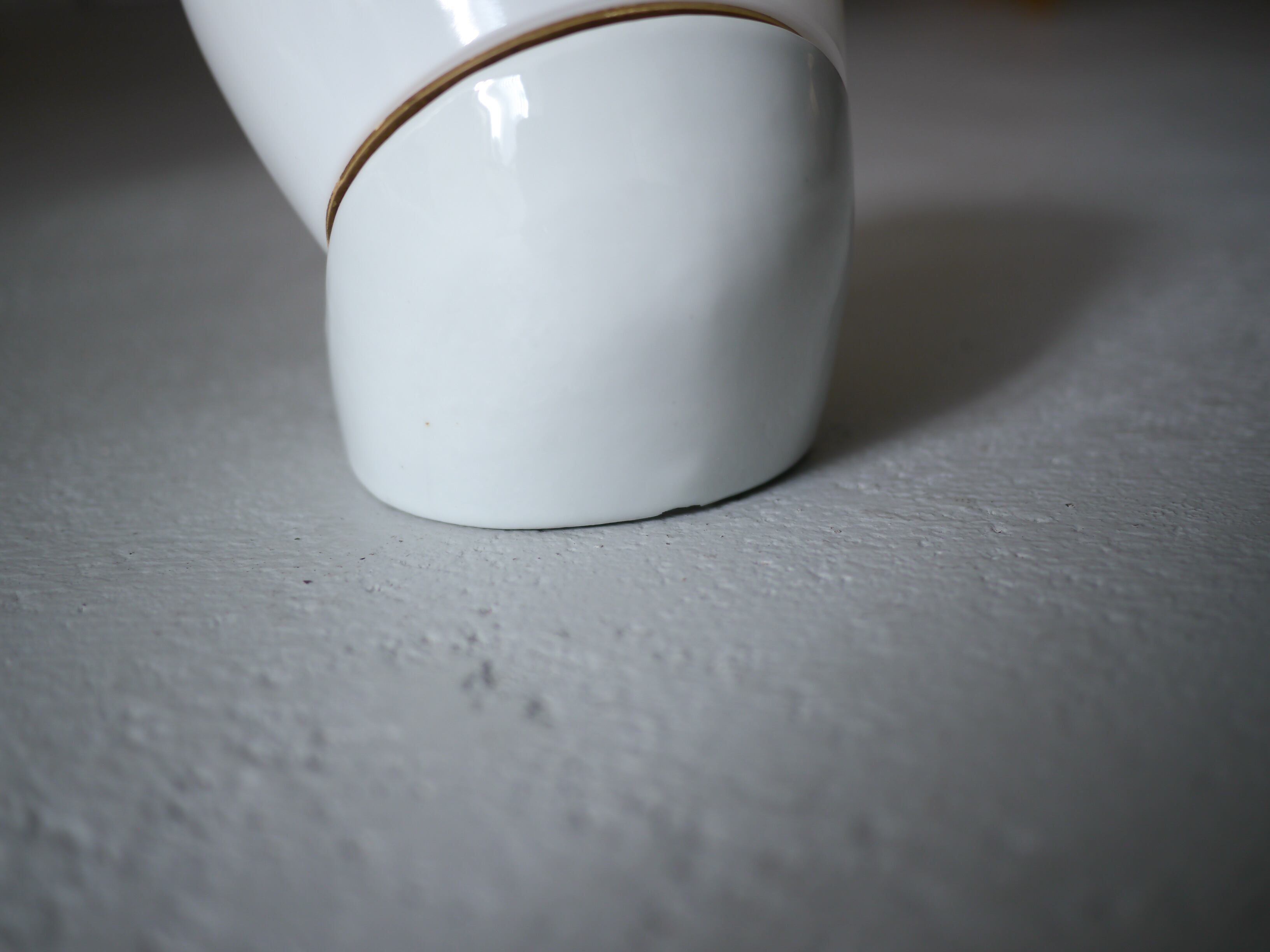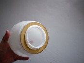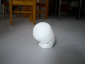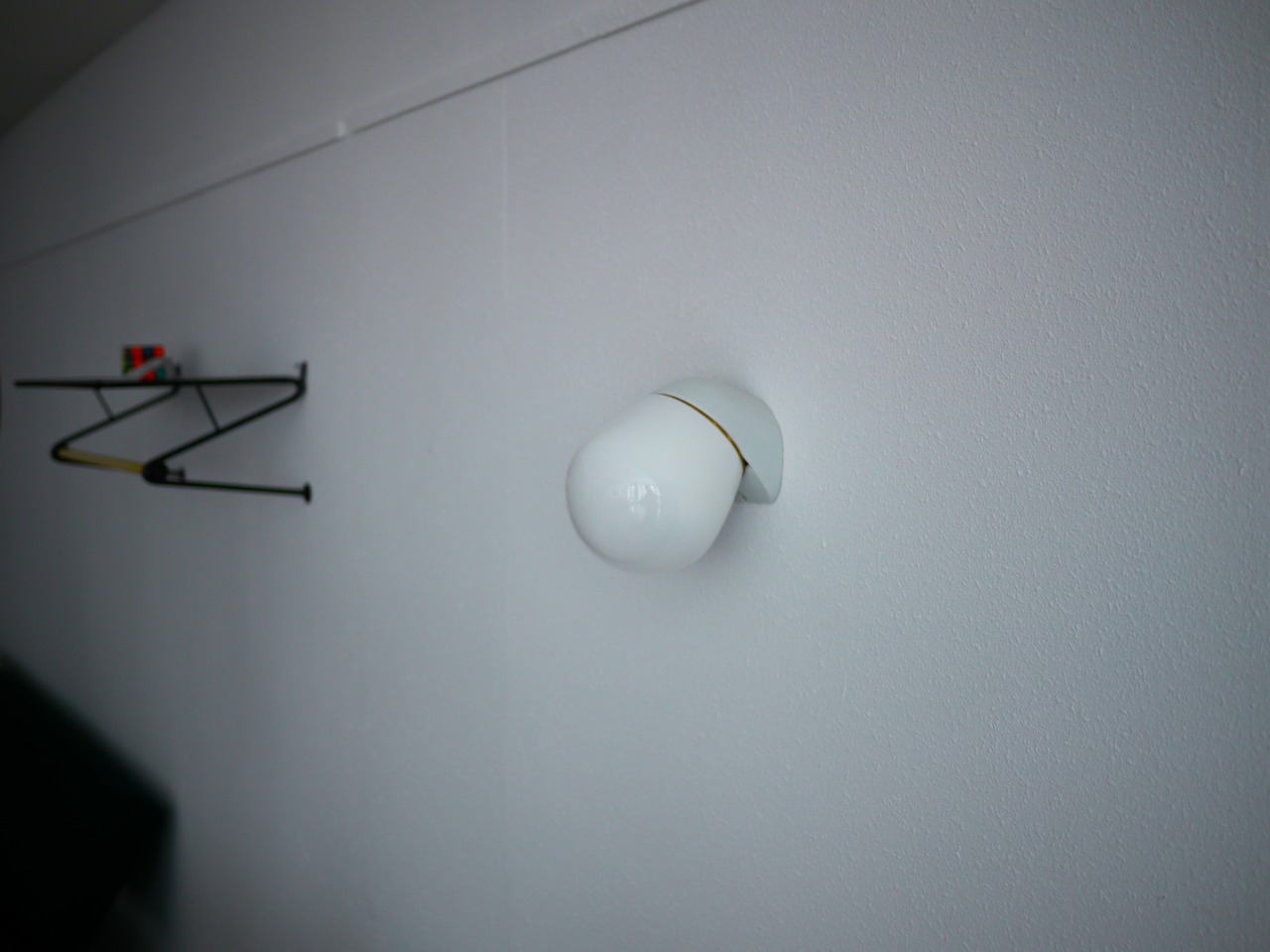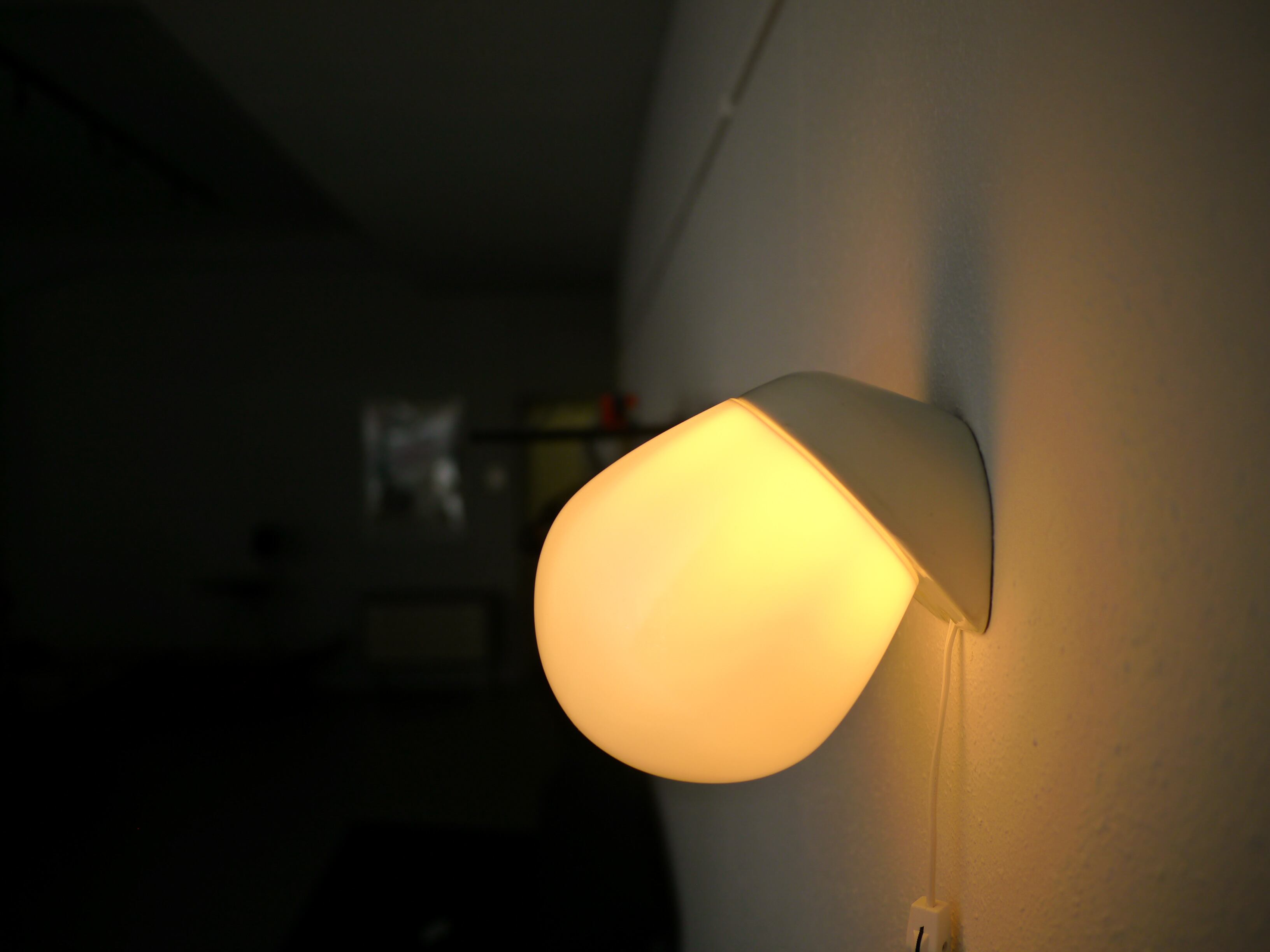 こちらの6010はどこか生き物の様な形が愛らしい、ウォールランプタイプ。シンプルで洗練された陶器製の台座と、乳白のガラスを通る優しい光が静かに存在感を放つプロダクト。台座に6010の刻印があります。また、前の使用環境によるコードを逃がしていたであろう微細なクラックが見受けられますが、壁に取り付けた場合そこまで目立つものではありません。こちらのBにはガラスシェードにパッキンが付きますが、屋外での使用はできません。