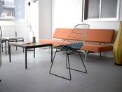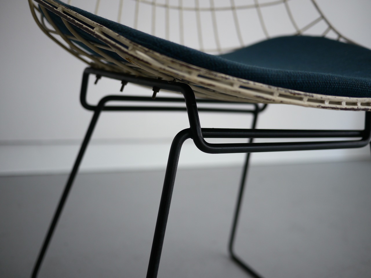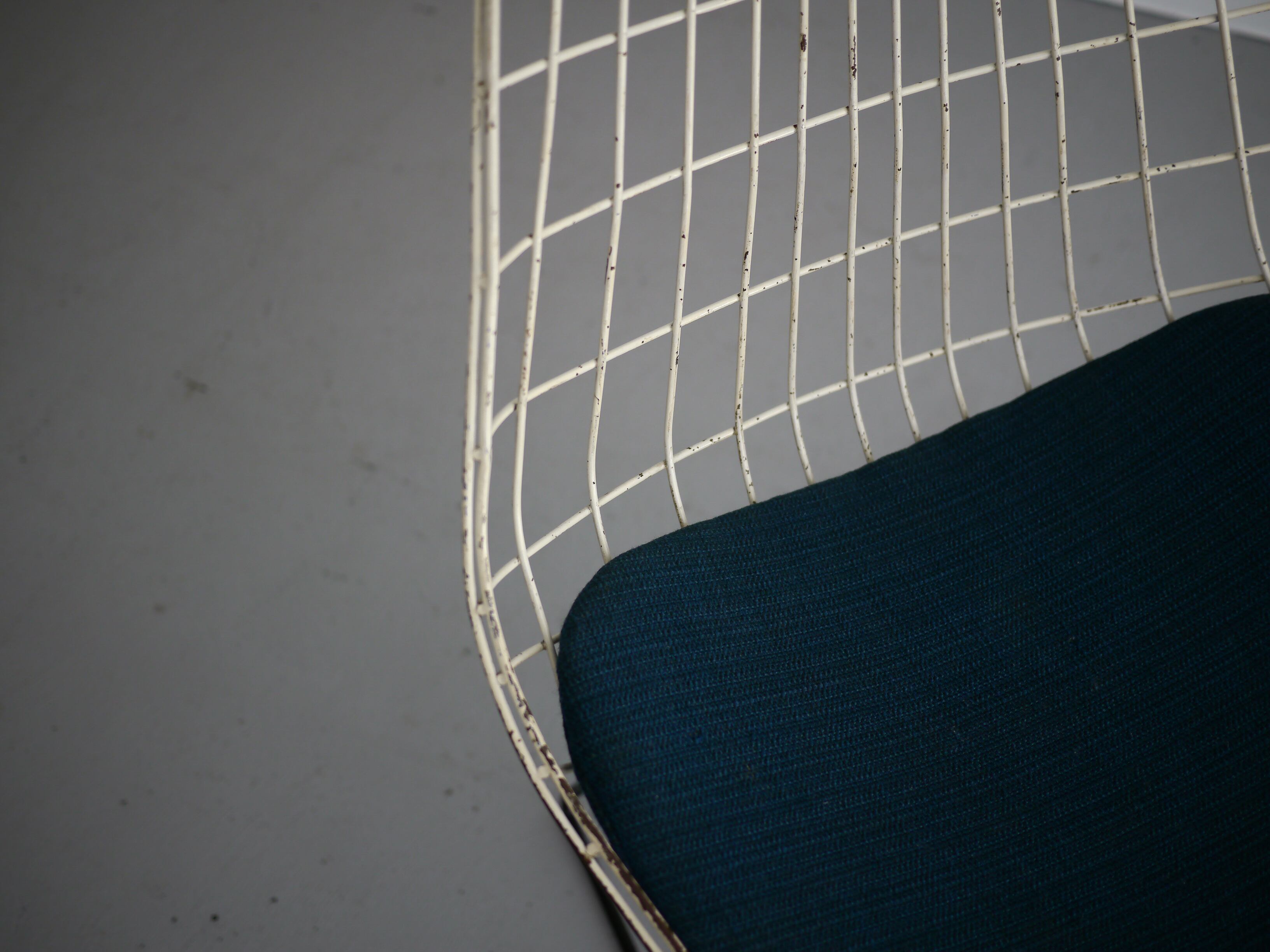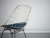 またワイヤーのチェアは圧迫感がなくどんな場所にも置きやすくなじみやすいのも大きな利点。こちらは現在復刻されている現行品ではなく、当時のヴィンテージ品です。オリジナルのシートパットもクリーニング済みでそのままお使いいただけます。