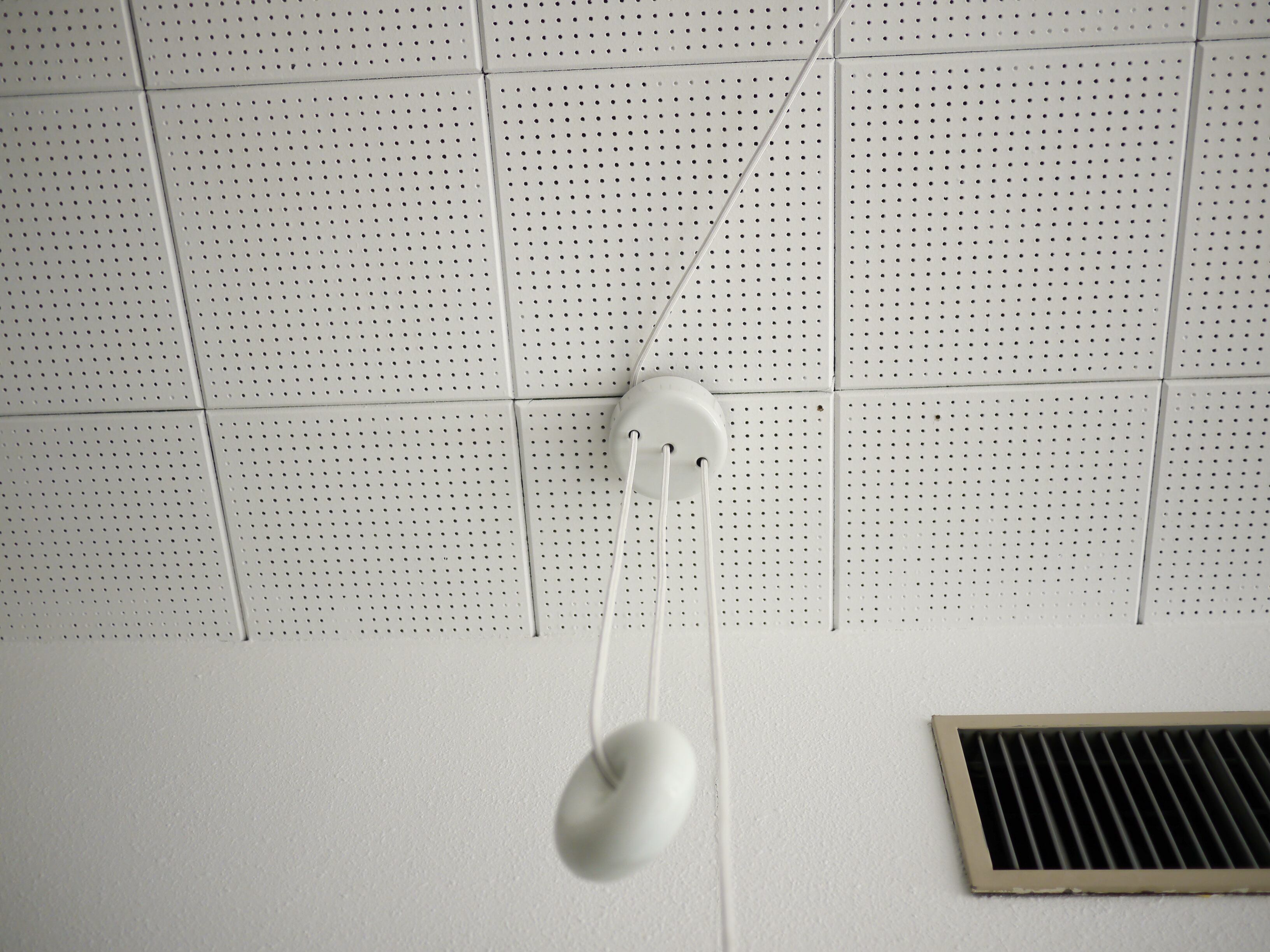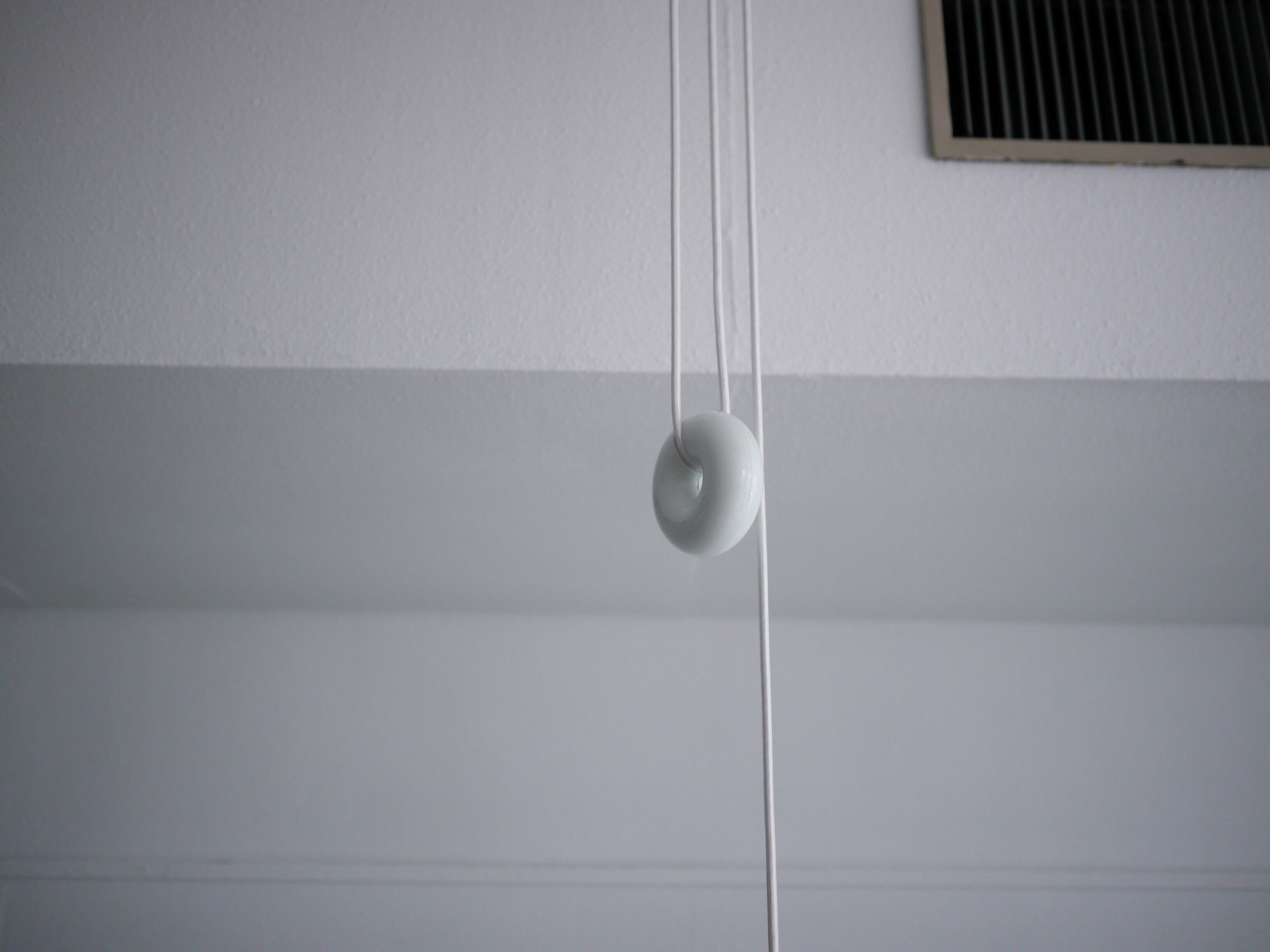 滑車が組み込まれていてドーナツ状のハンドルを引くとランプ本体の高さが変わるようになっています。