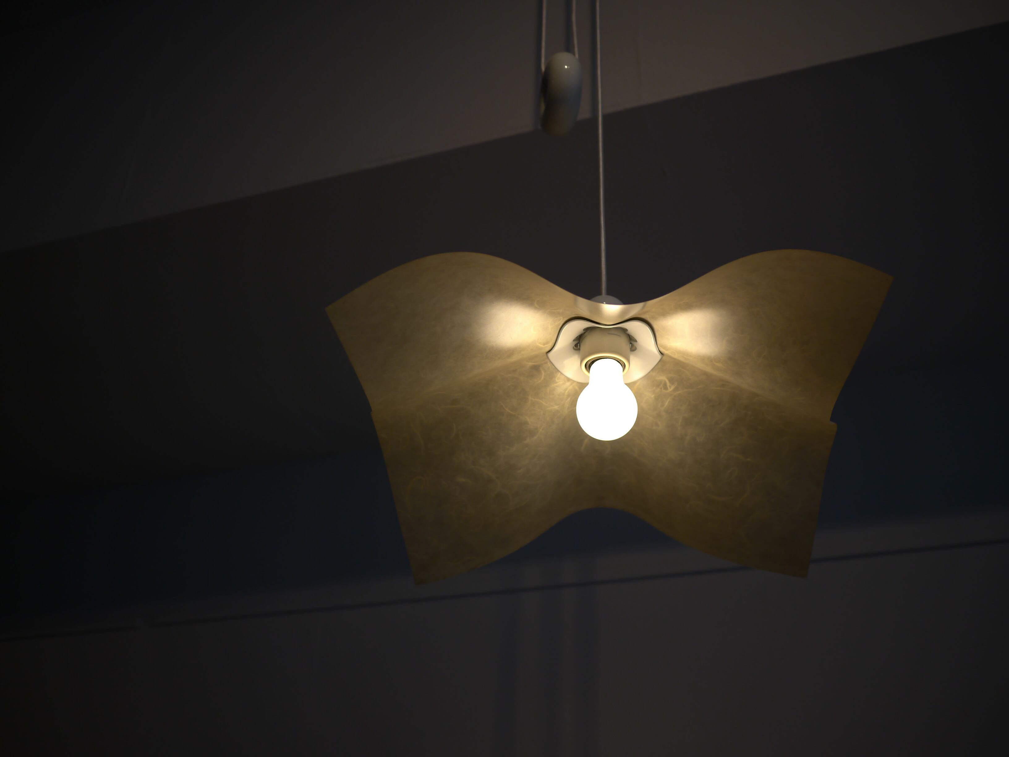 半透明の樹脂製のシェードによって光を適度に拡散させ、不均等に湾曲する5つのヒダを効果的に作ることによって雲や空といった自然物を表現したこのシリーズ。機能をデザインした上で被膜としての美を加えるベリーニのアイディアがそこに宿ります。ライトは照らすことではなく、発光するもの以上の何物でもないと考えるベリーニの思想。その有機的な考えから生まれたこの照明は、部屋と外の境界を緩やかにしてくれる器具とも言えるかもしれません。