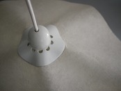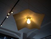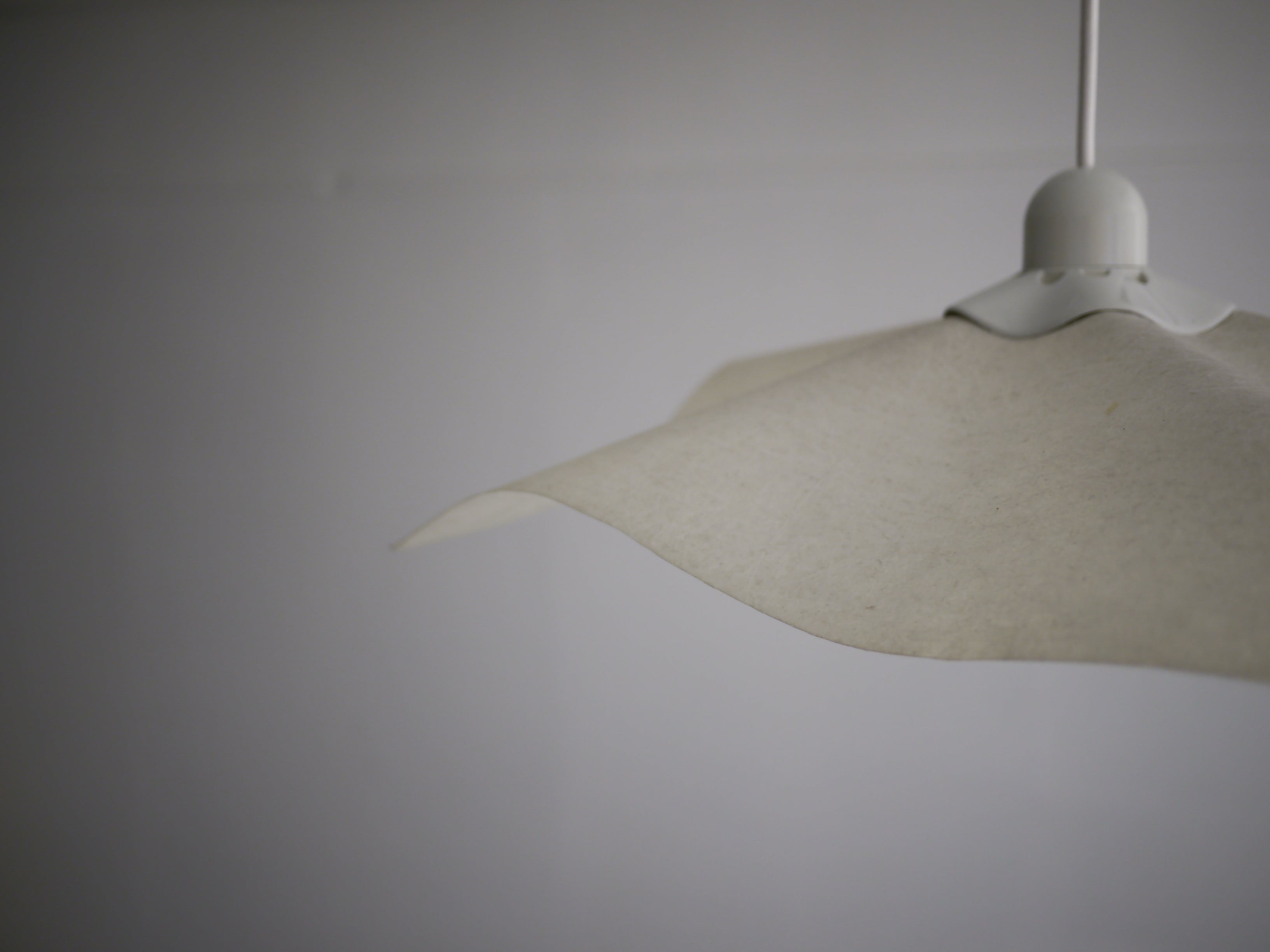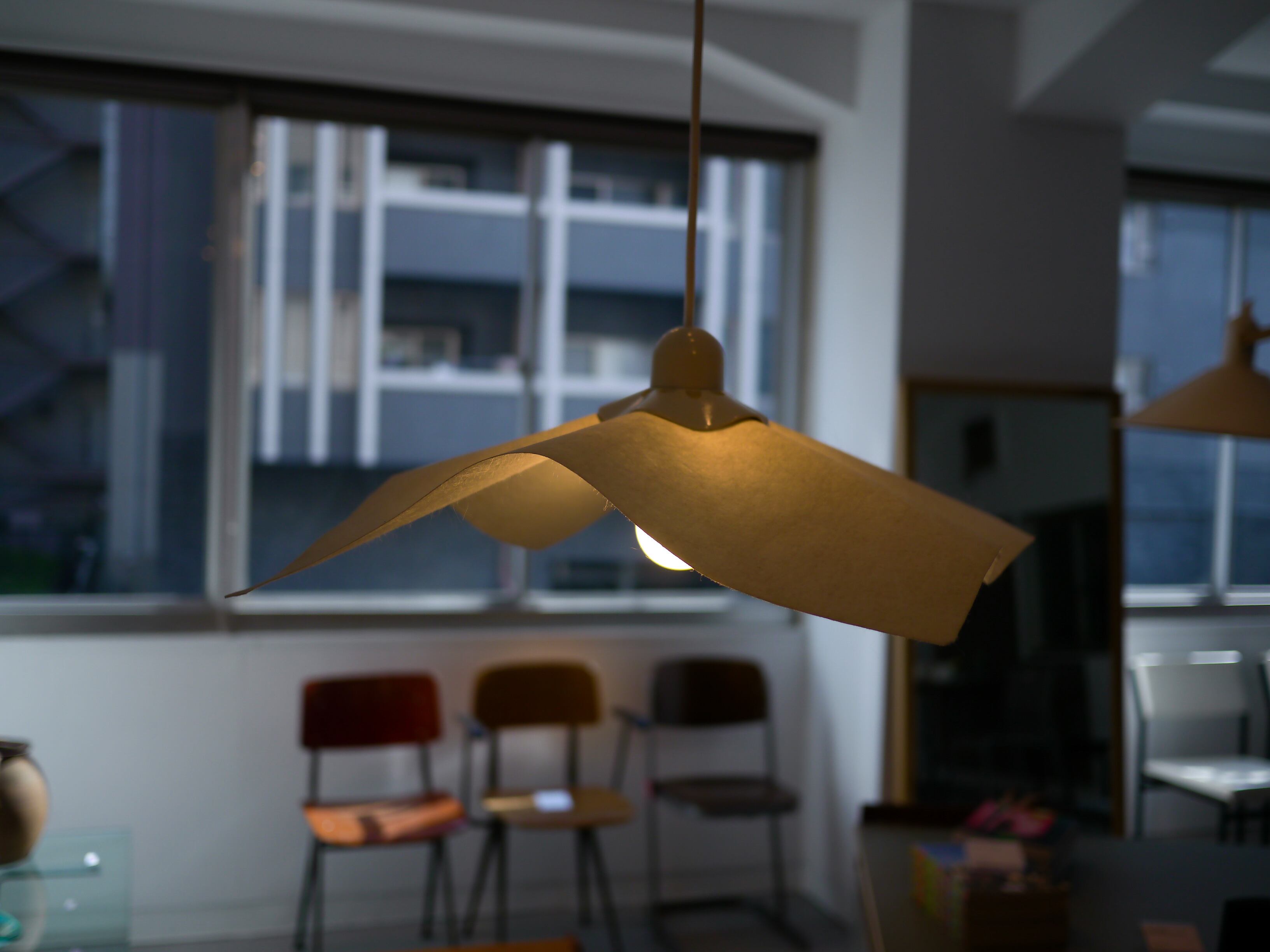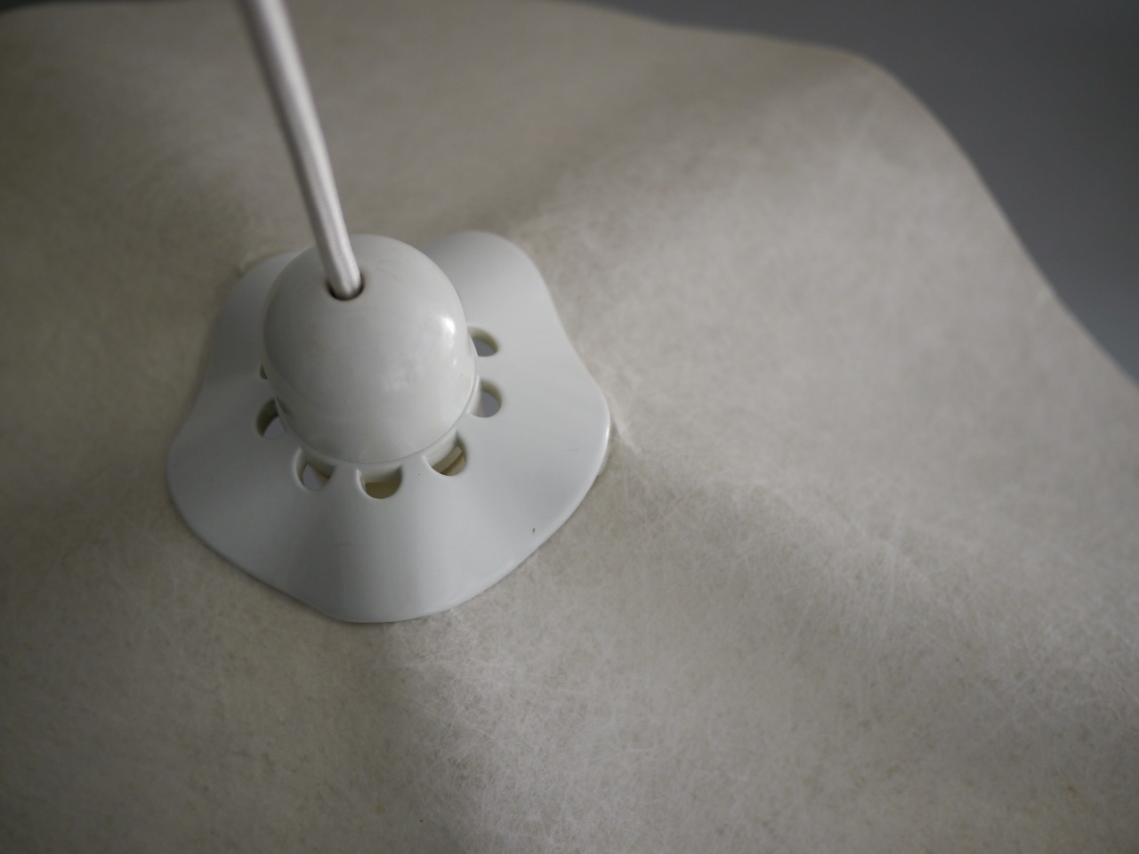 こちらは通常のペンダントタイプ、引っかけシーリング仕様、専用のカバーを使用しての直付け仕様がお選びいただけます。ご購入時にご希望をお伝えください。シェード中央部に多少のよれがありますが、そこまで目立ったものではありません。