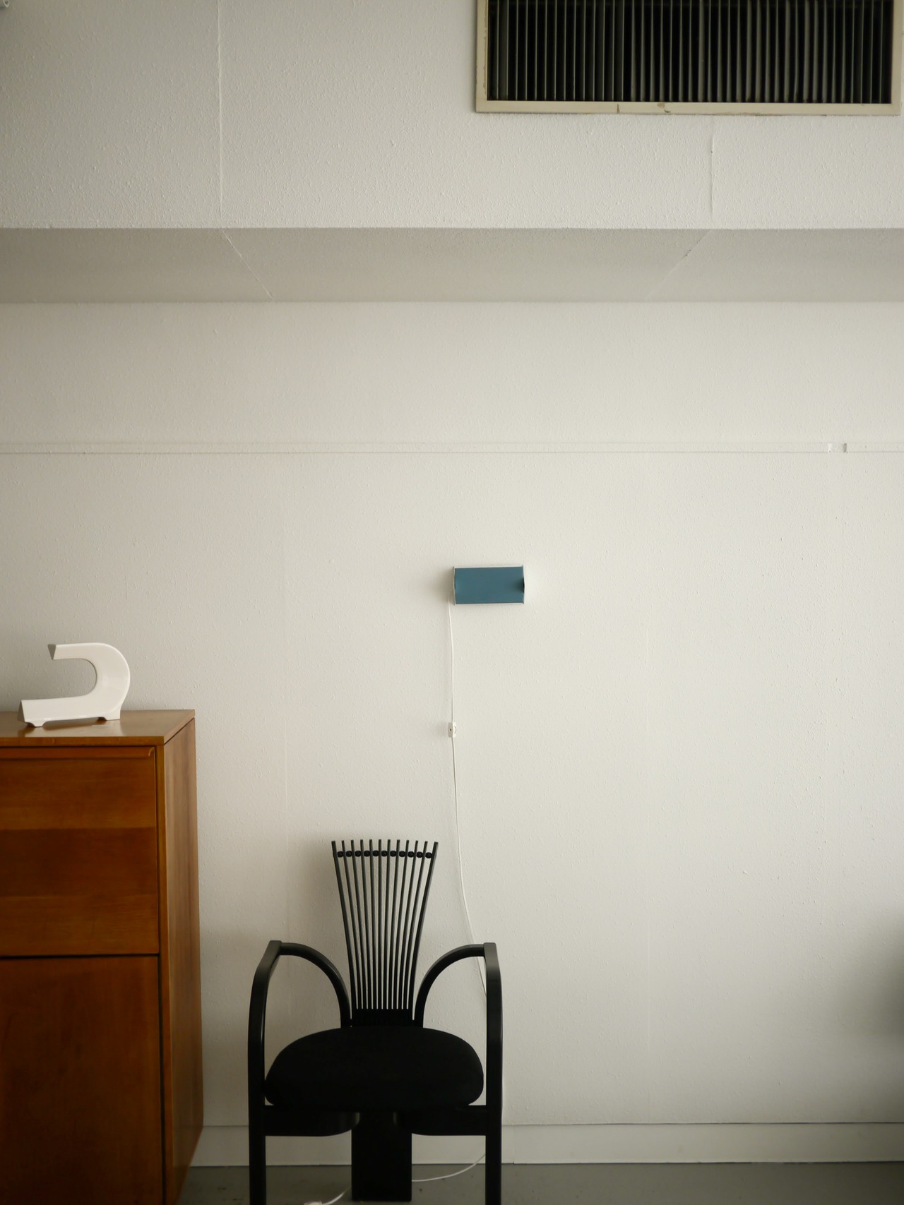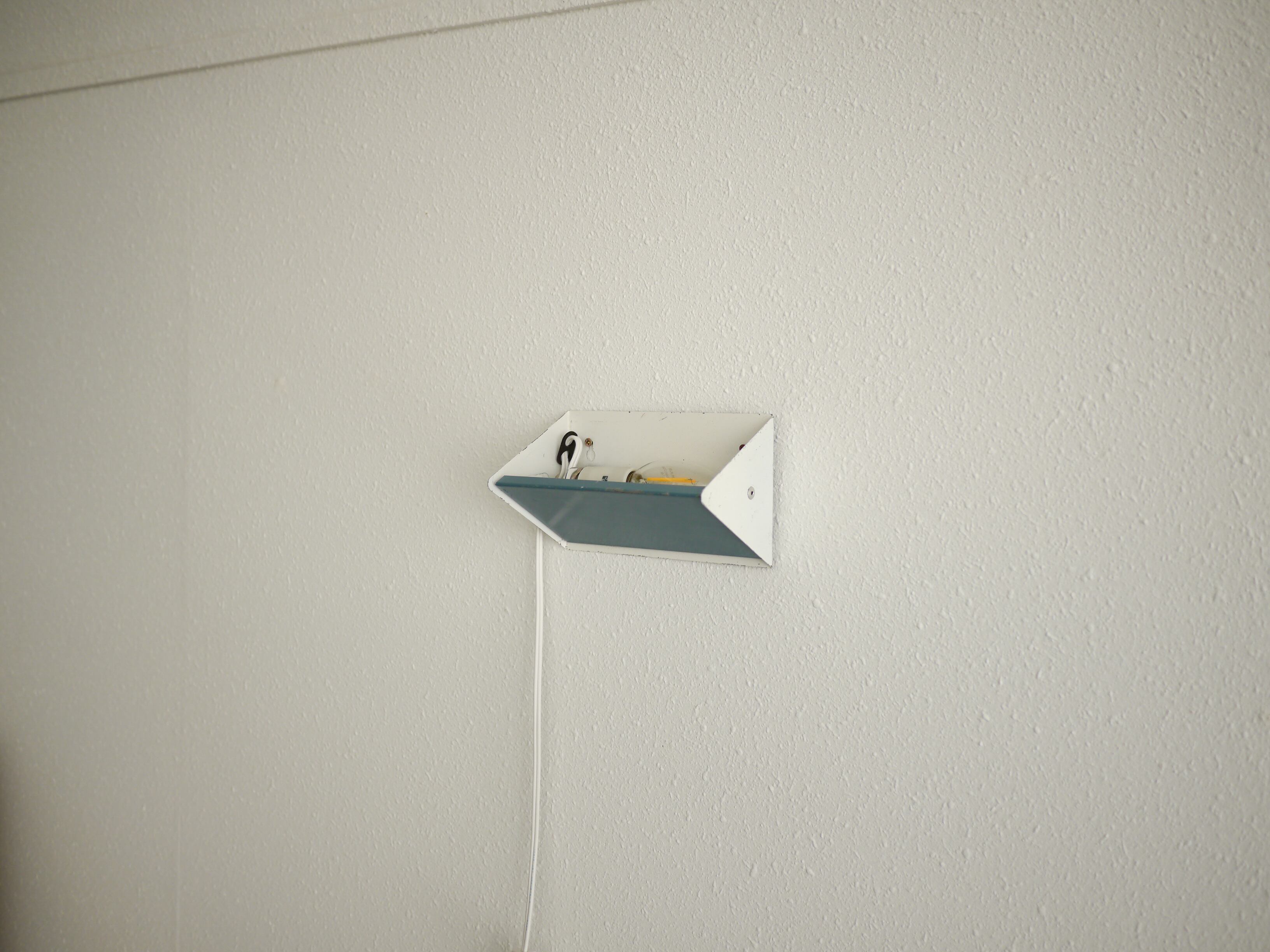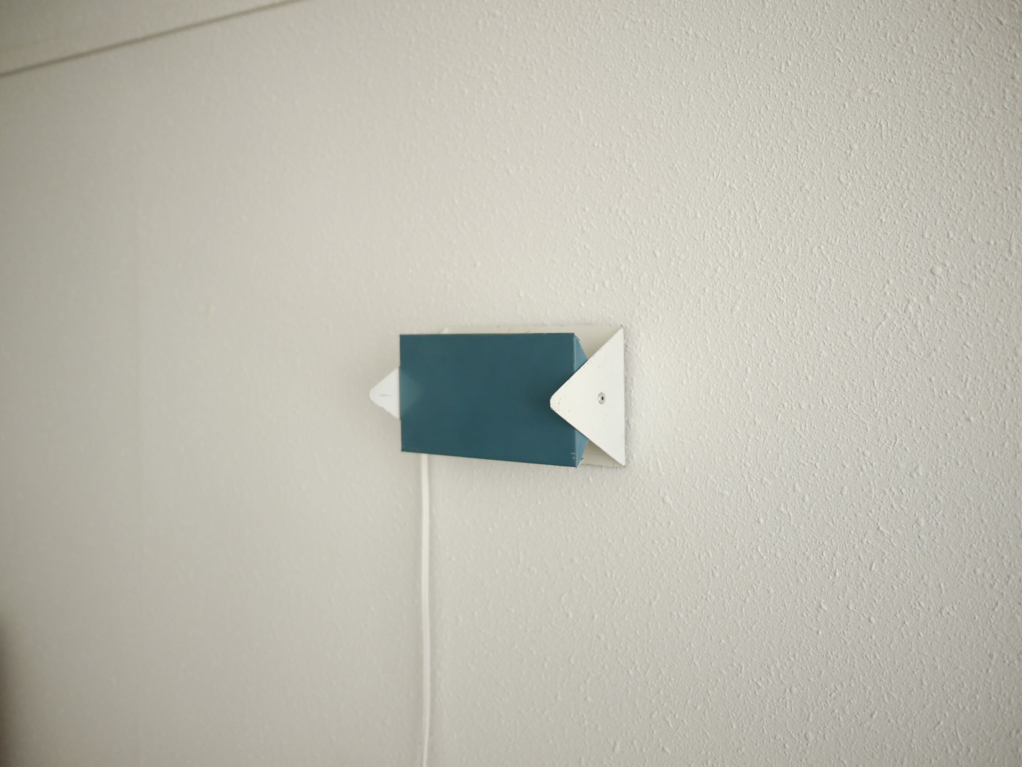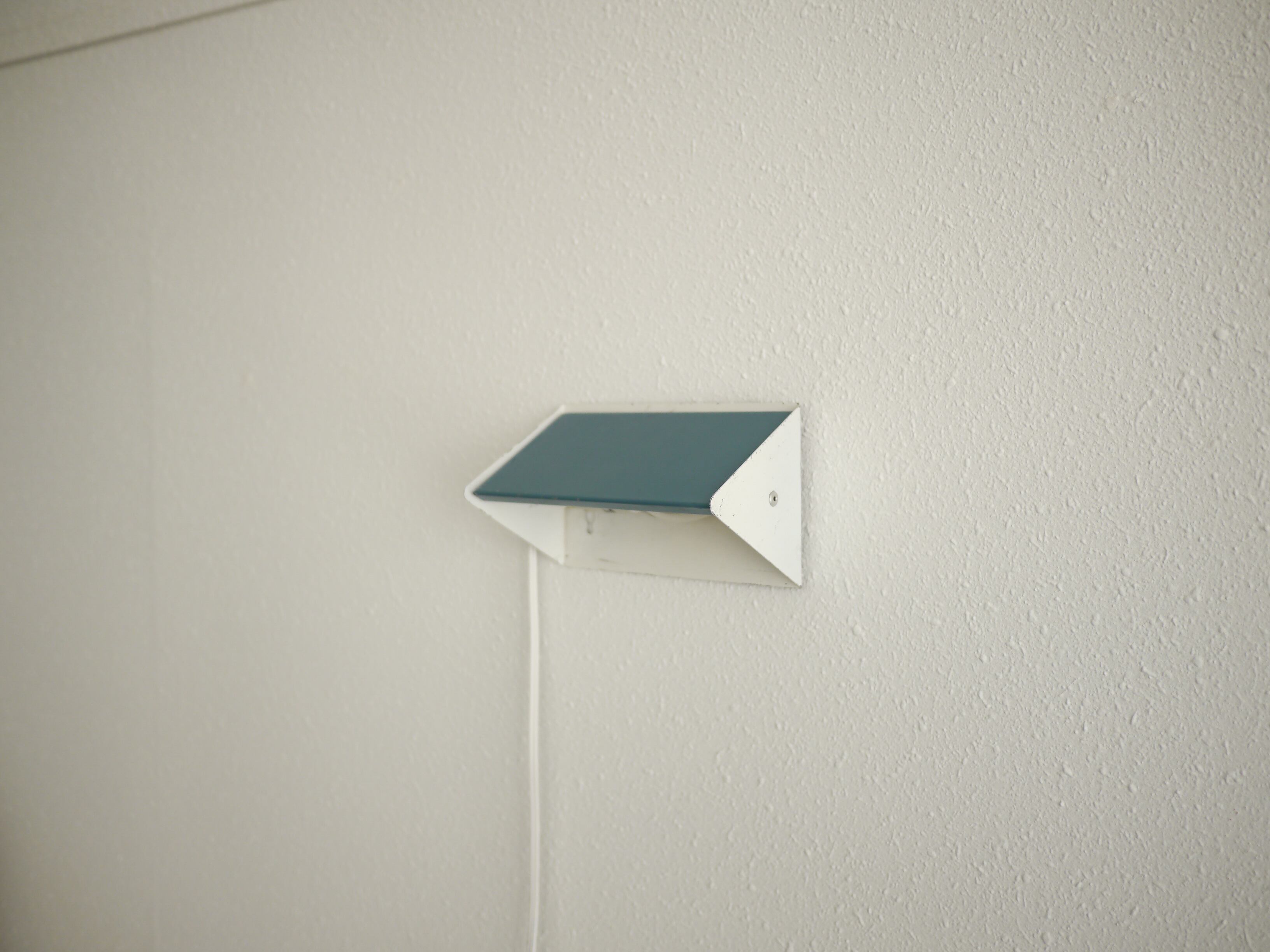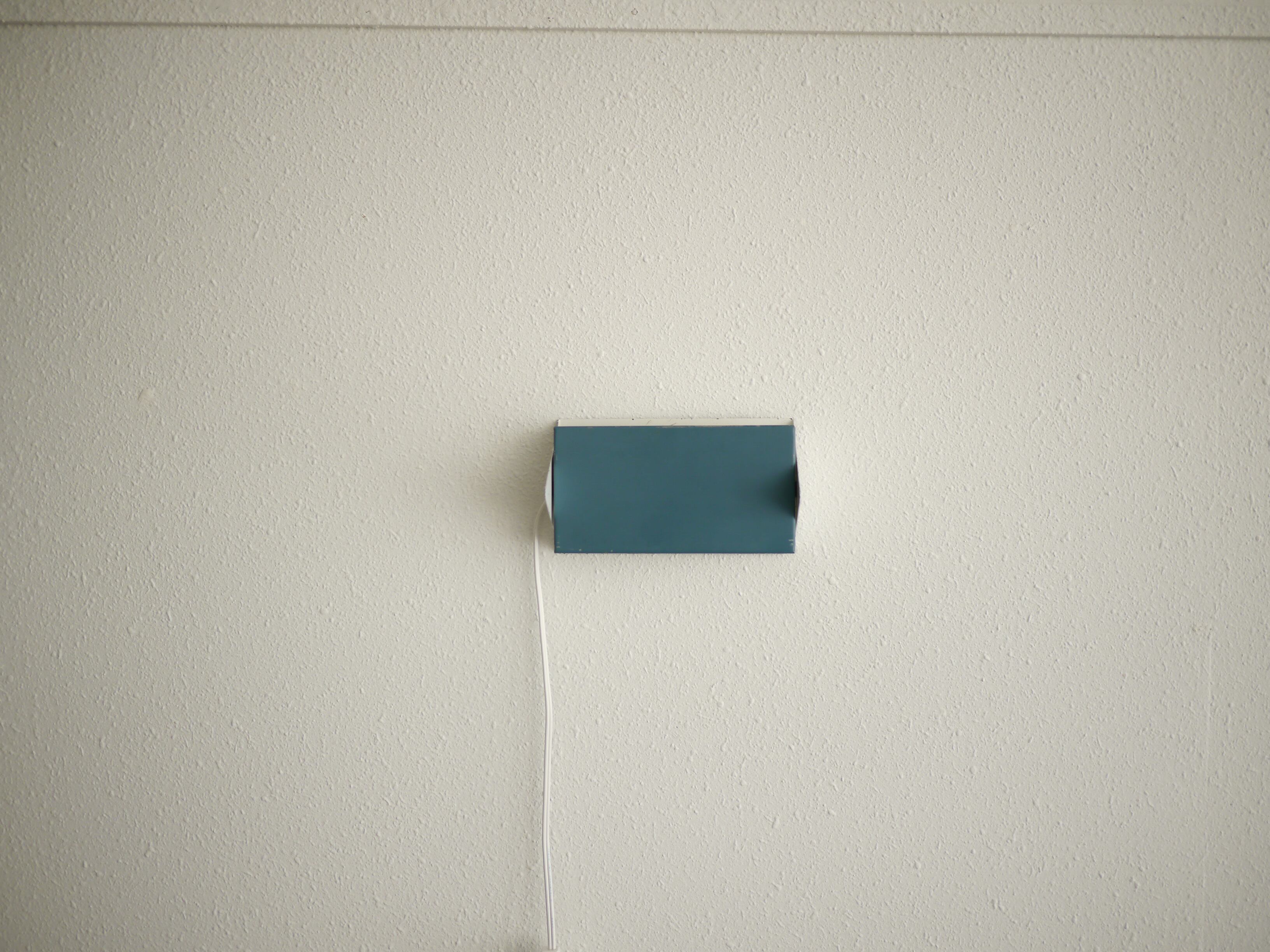 ルーバーを動かすことでアッパー、ダウン、双方のライティングが可能でまた、背面に4つの穴が開いているために、上下左右好みのハンギングが可能です。ビス等で壁にハンギングして使用します。こちらは水色のルーバーです。