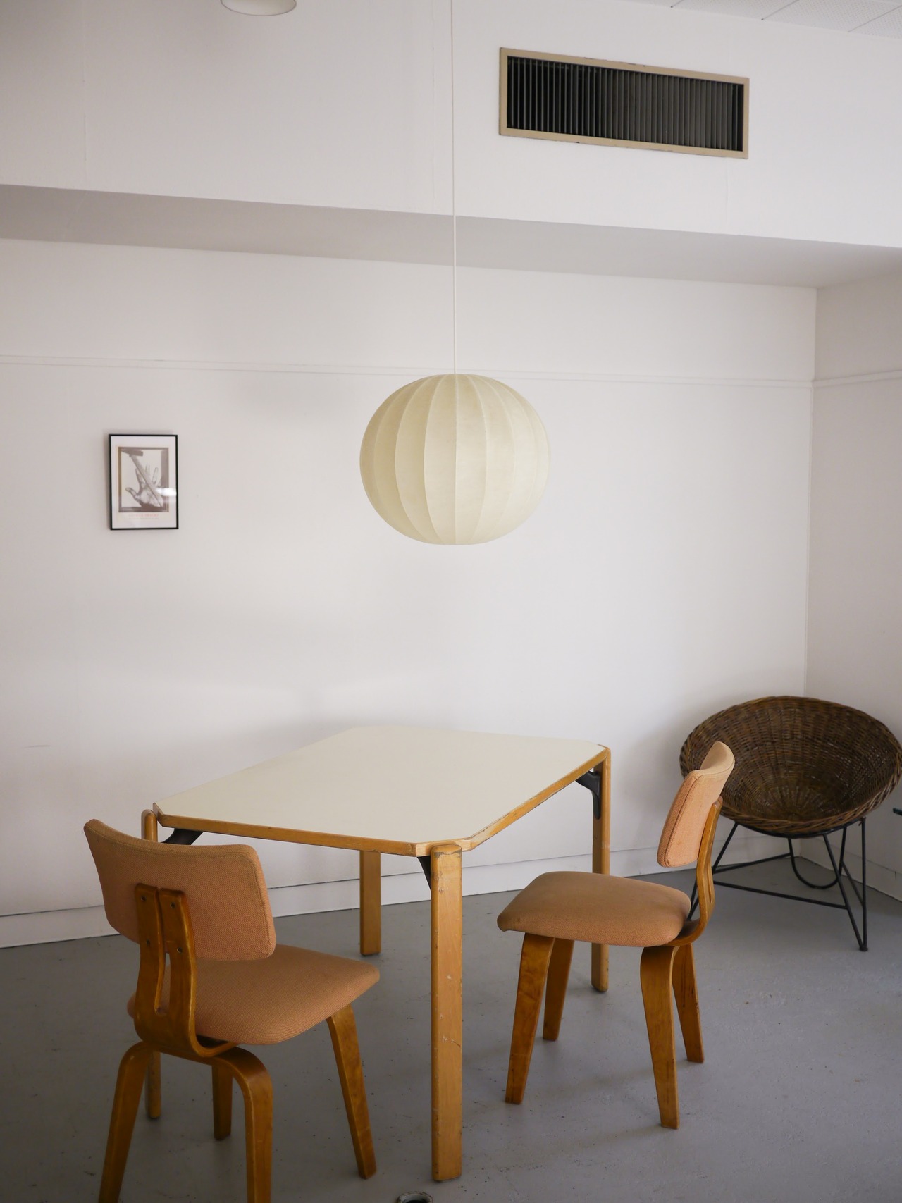 以前入荷したものより二回り程大きく明るさも取りやすい為、テーブルトップ・リビングなど様々なシーンでお使いいただけると思います。多少の染み、細かなペンキ飛びなどがありますがあまり気にならないコンディションです。