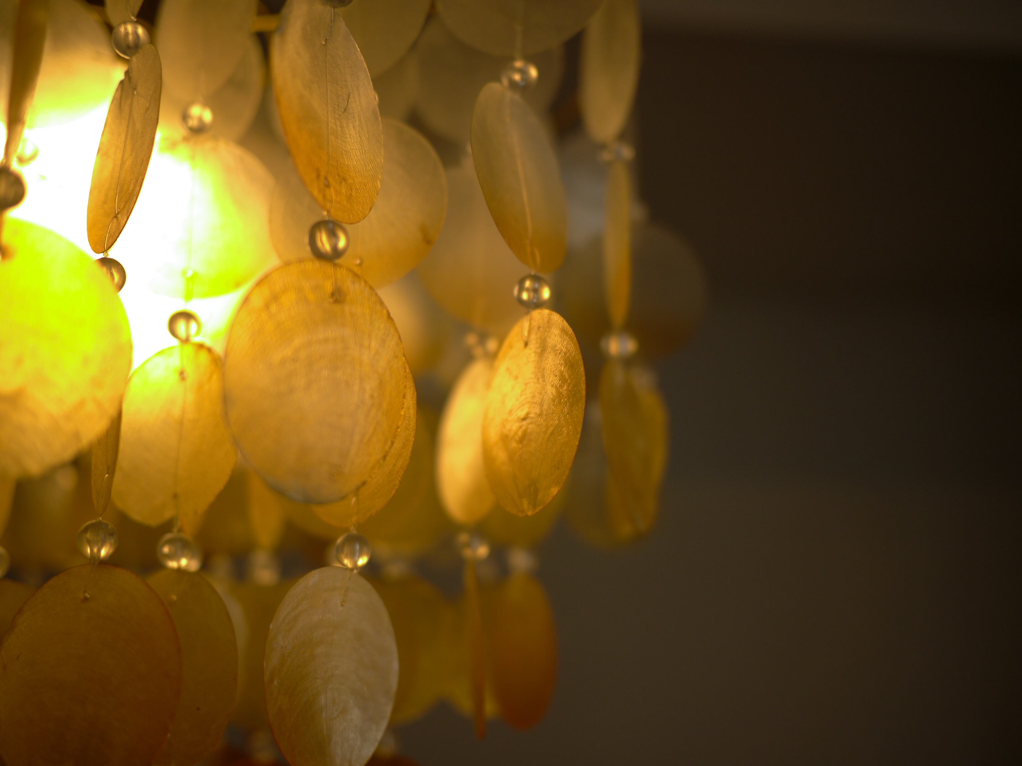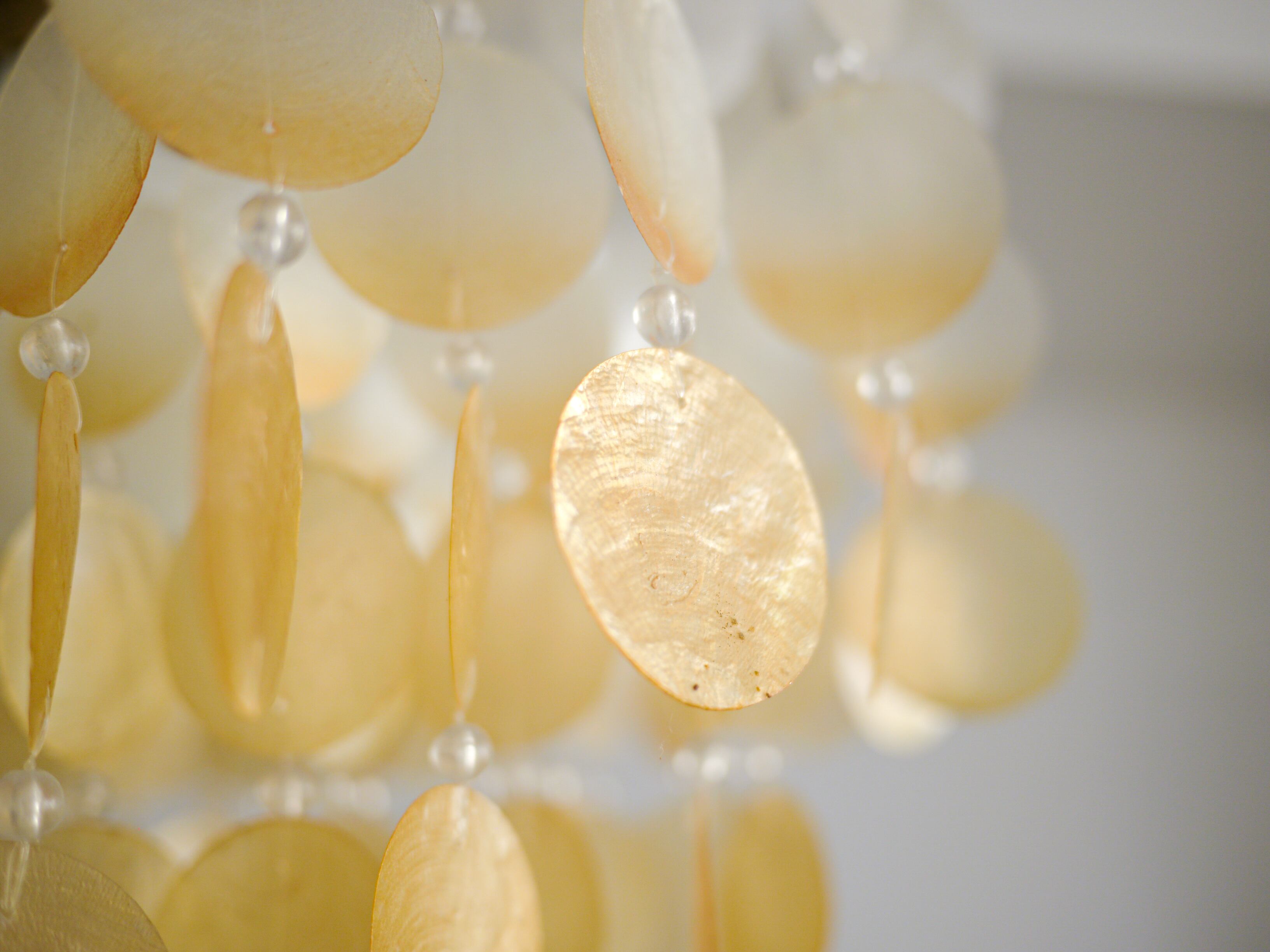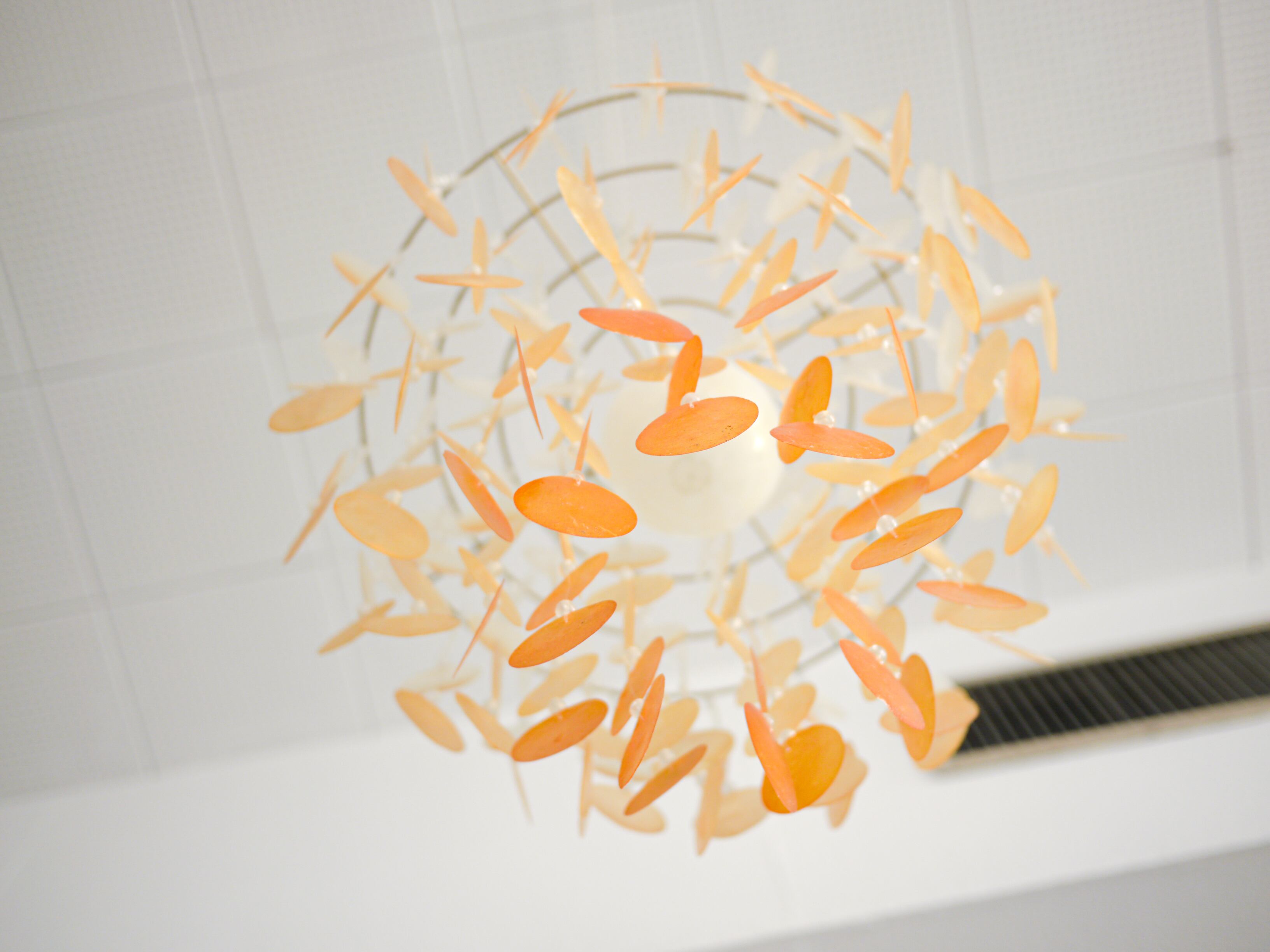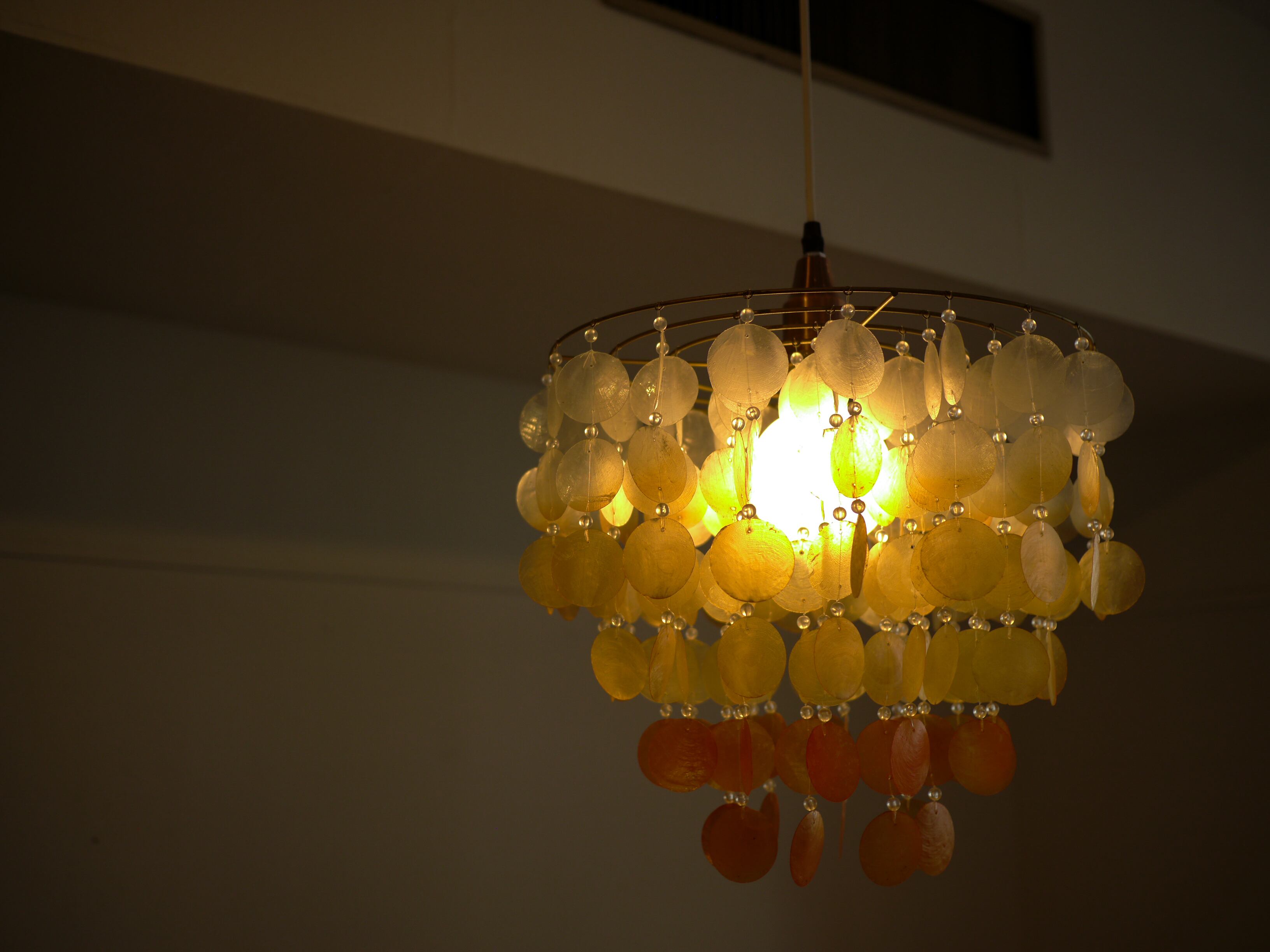 デンマーク人デザイナー、ヴェルナー・パントンのファンシェルシリーズに似ていますが、スタこちらのペンダントランプはおそらく樹脂製のシェルを使用してるパントンスタイルなペンダントランプ。カラーリングが面白く、光を灯すと表情の変化も楽しいランプです。また、風に揺れると風鈴の様な涼しげな音も聞こえます。